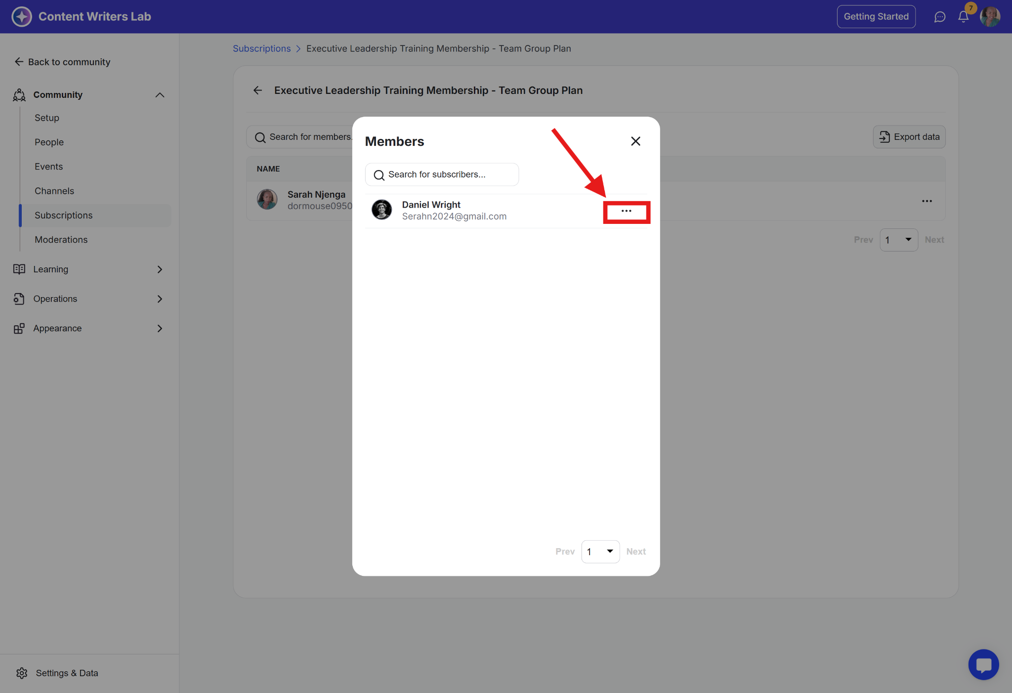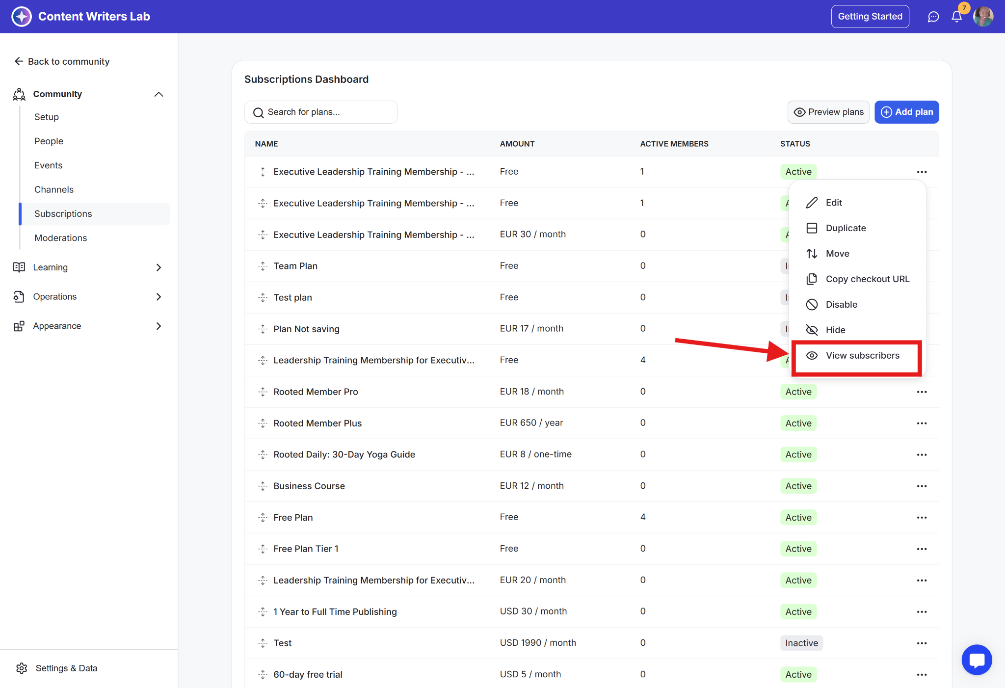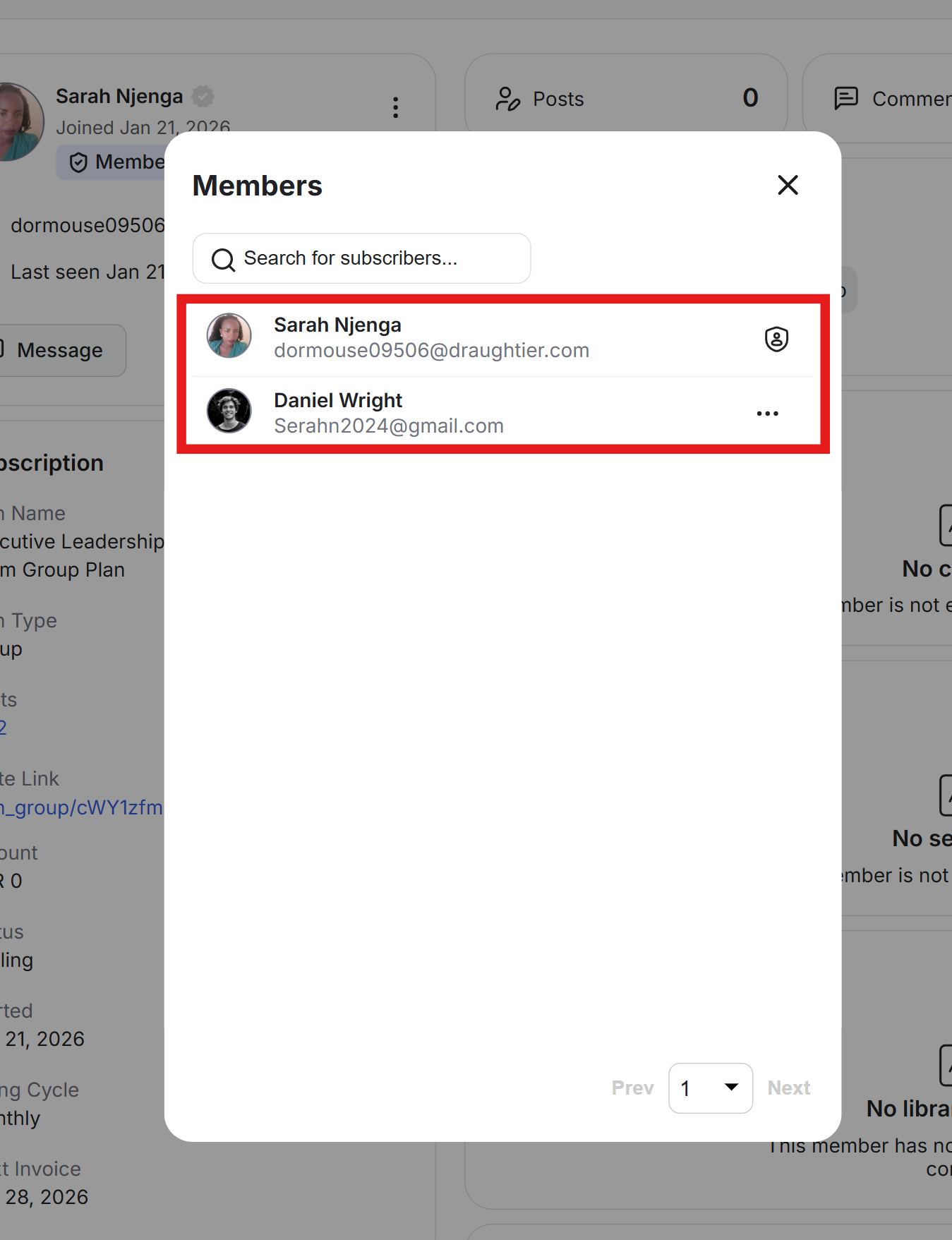 Step 2: Locate the group subscription plan and click the three-dot icon. Select View Subscribers.