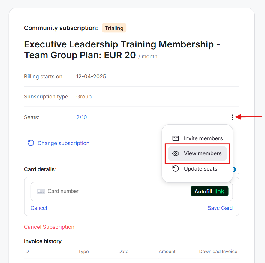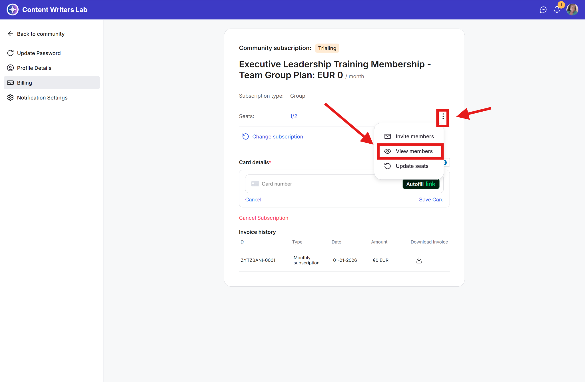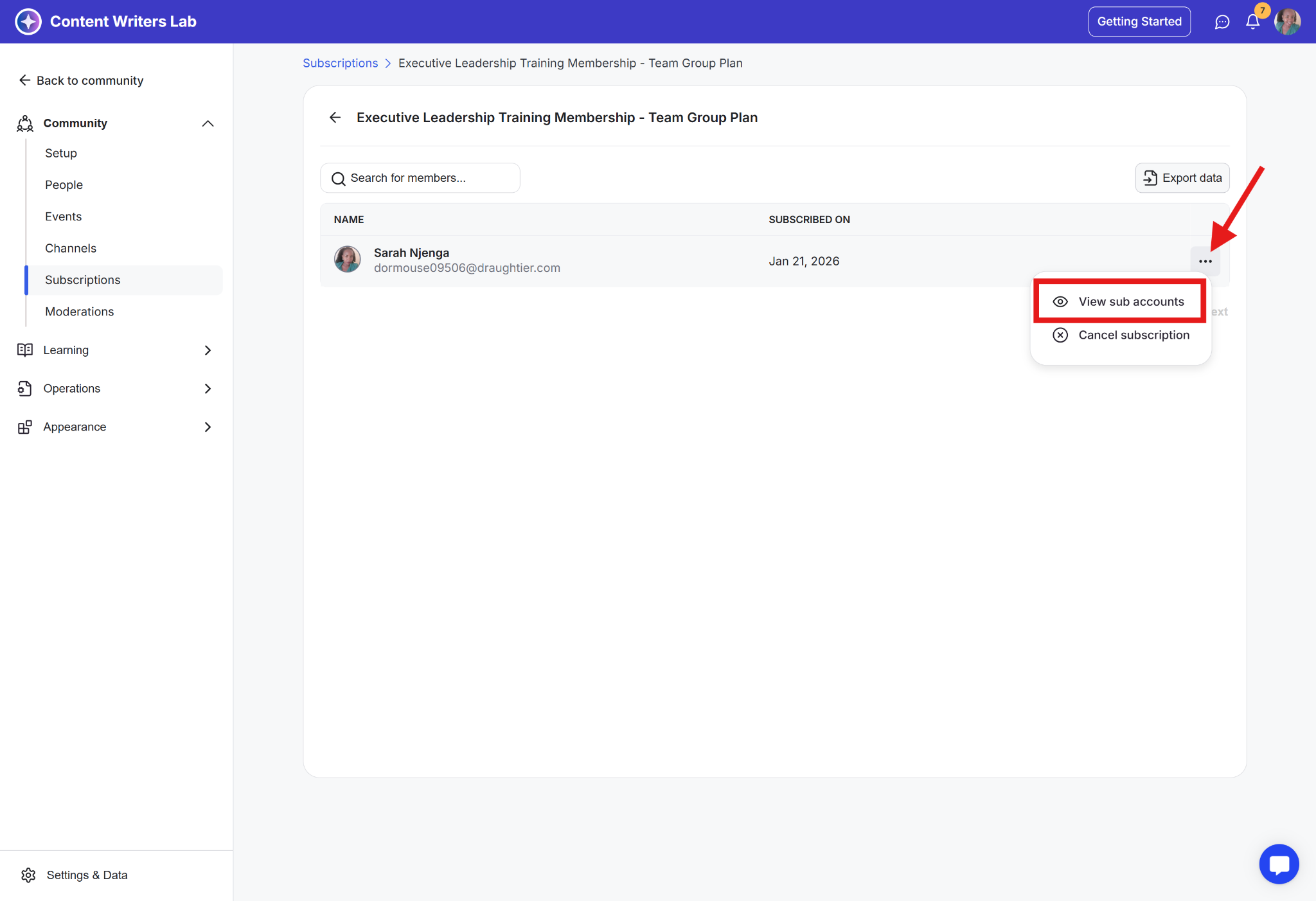 Step 2: Locate the group subscription plan and click the three-dot icon. Select View Subscribers.