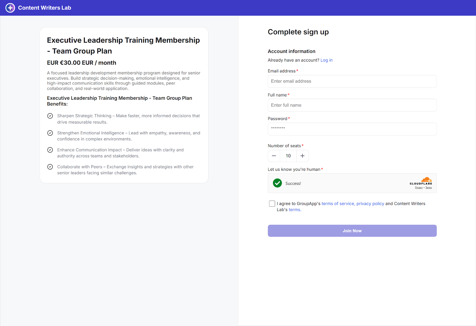 Corporate training cohorts: Offer a 10–50 seat plan to a company buying leadership or compliance training, with one invoice and an invite link that the manager can share internally to fill seats fast.