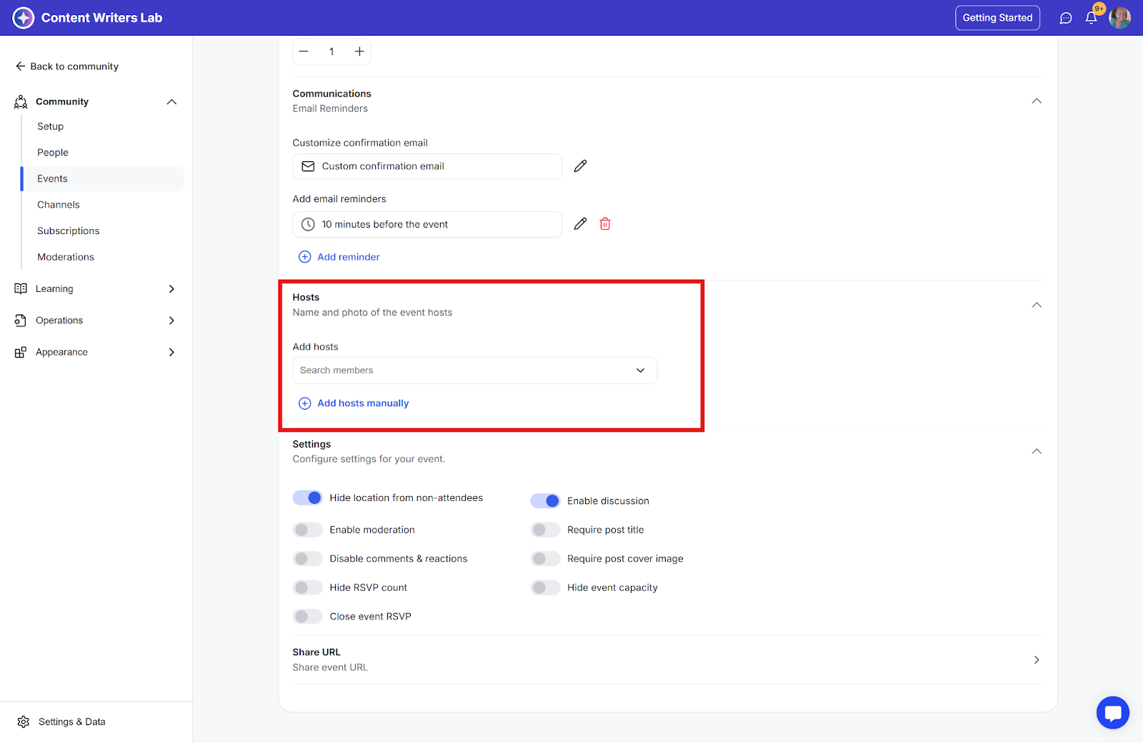 Step 14: Add your Event Hosts and configure any remaining settings.