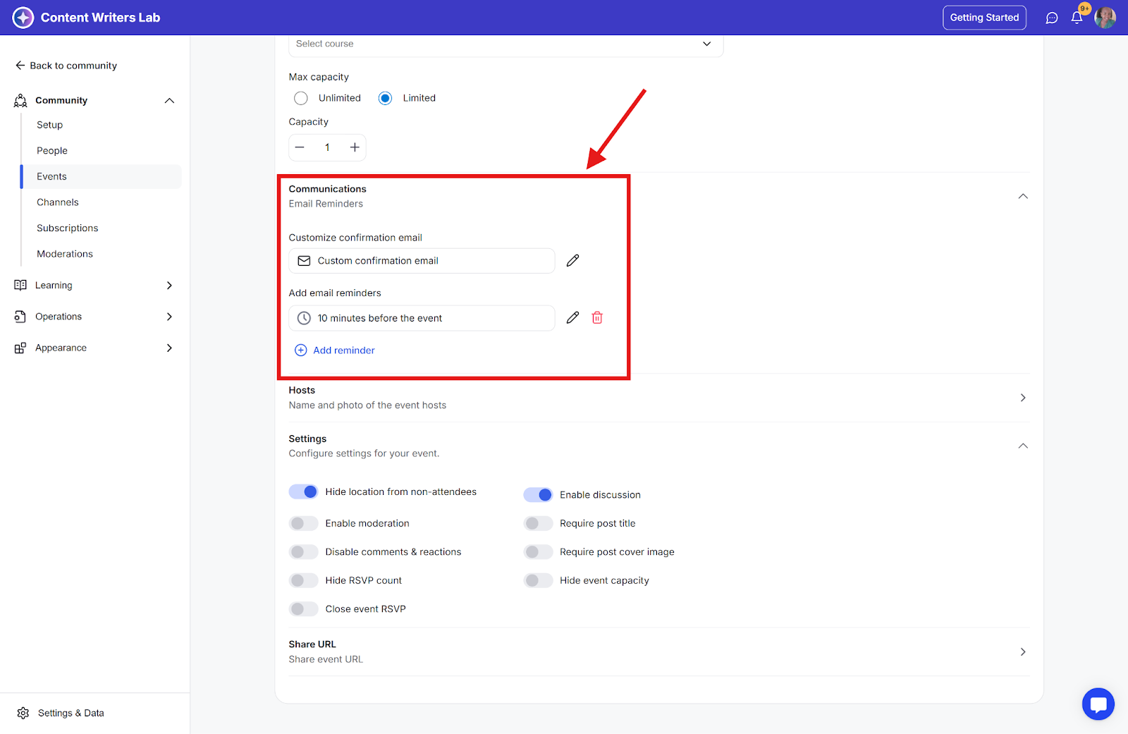 Step 13: You can also set custom reminders for your events. Note: The set custom reminders will be sent for each event as per the time set before the event.