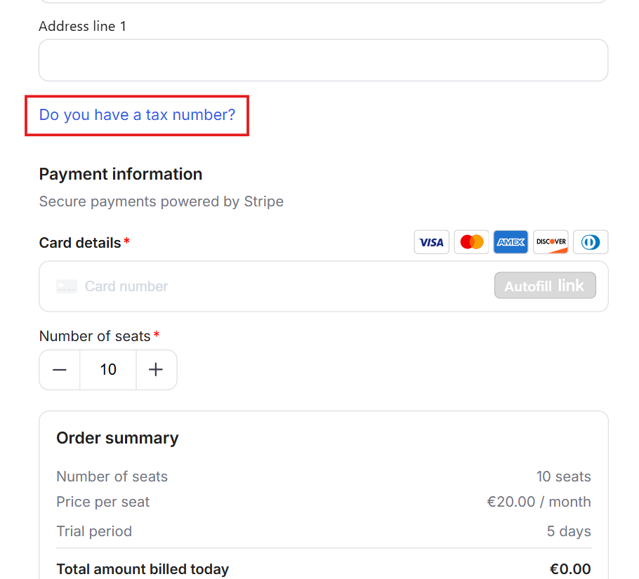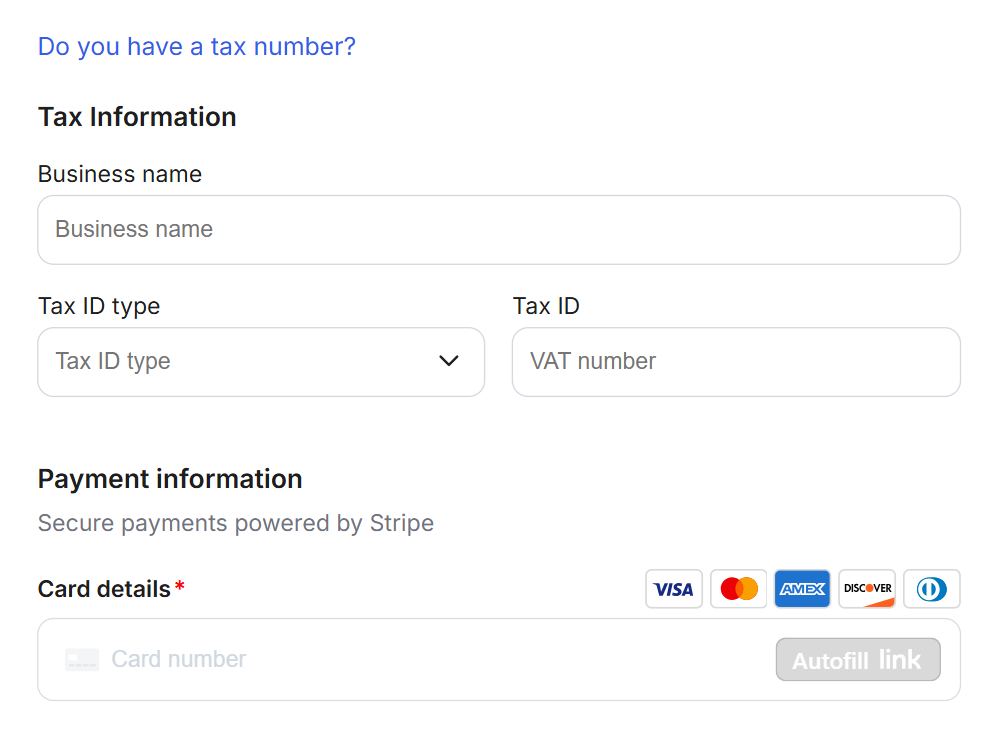 Reduced support workload: Members don’t need to email their billing address or tax ID later. The checkout form captures everything automatically.
