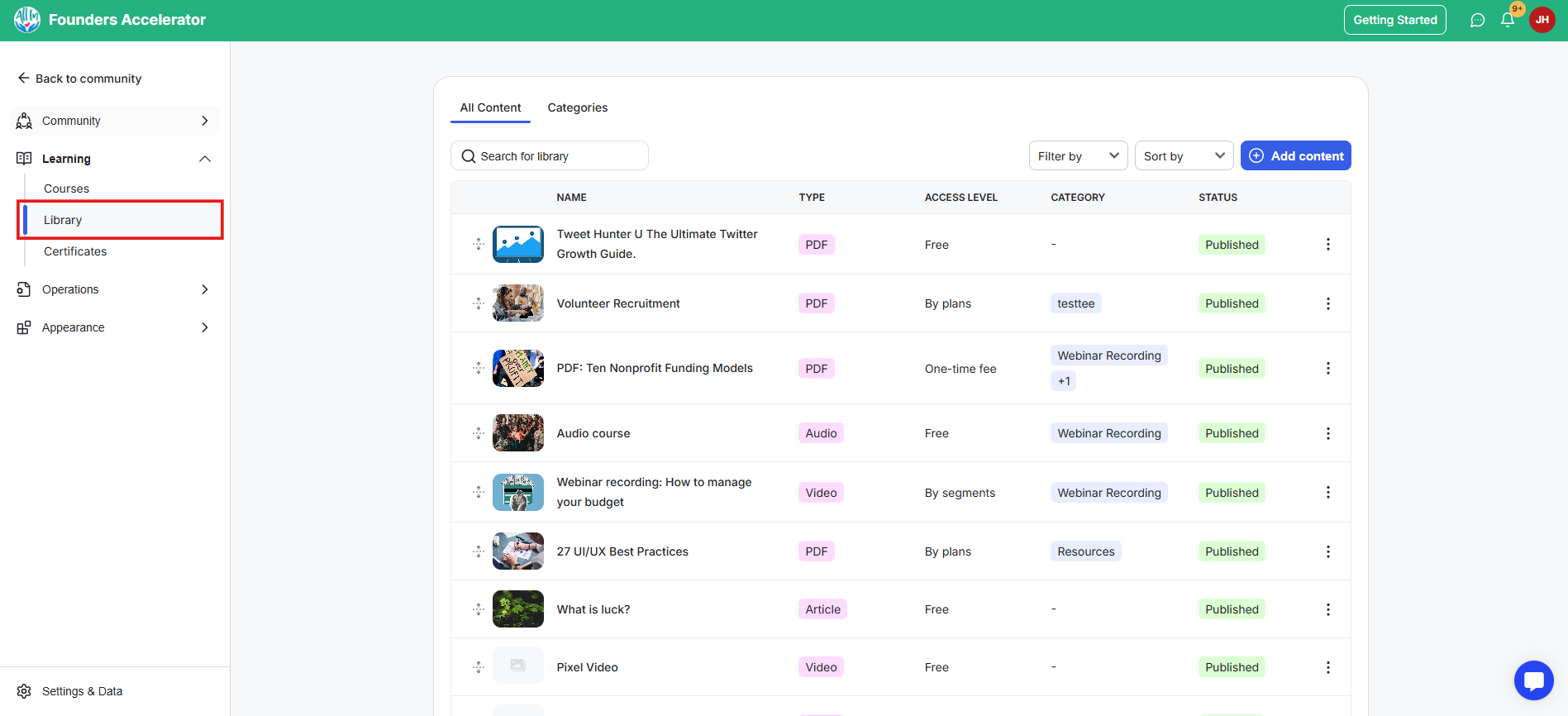 Start by deciding what kind of content belongs in your library, downloads, recordings, or templates. Add a few core categories to keep it simple. Upload one or two resources first to test your structure before filling the rest.