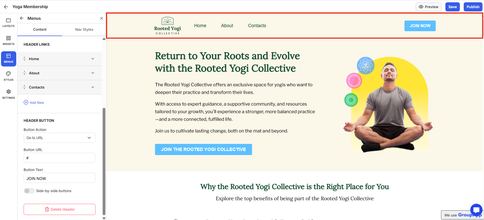 Membership website: Combine headers, footers, and consistent styling to create a membership website.