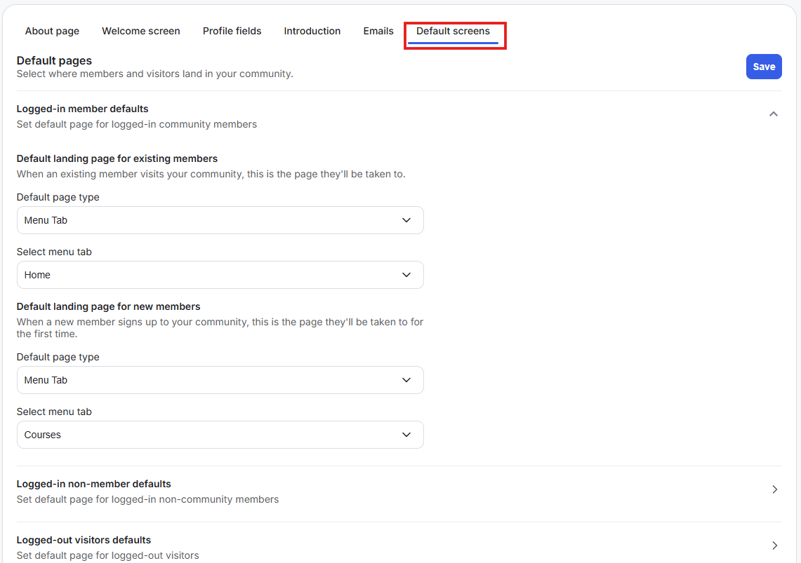 Retention on return: Set Default Pages so returning members land on a progress view or new content hub, which gives them a reason to log back in.