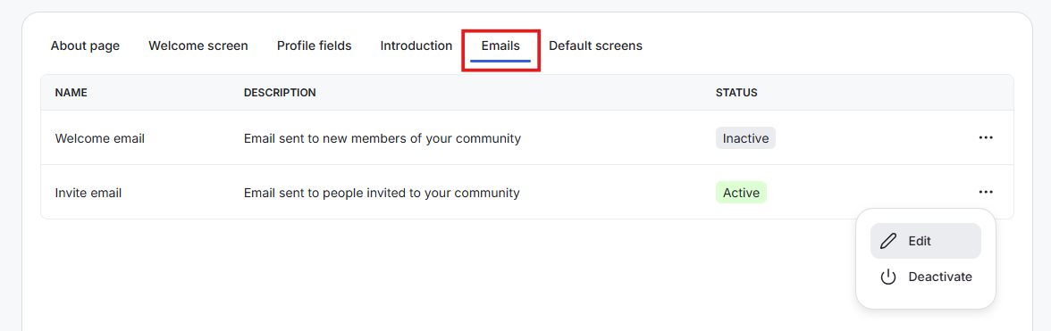 What it is: Two emails you control; Invite (to people you invite) and Welcome (to new members after they join).