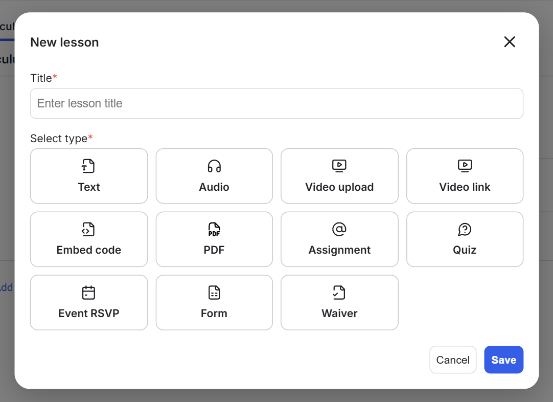 Include event lessons for cohort-based sessions so members can RSVP inside the course.