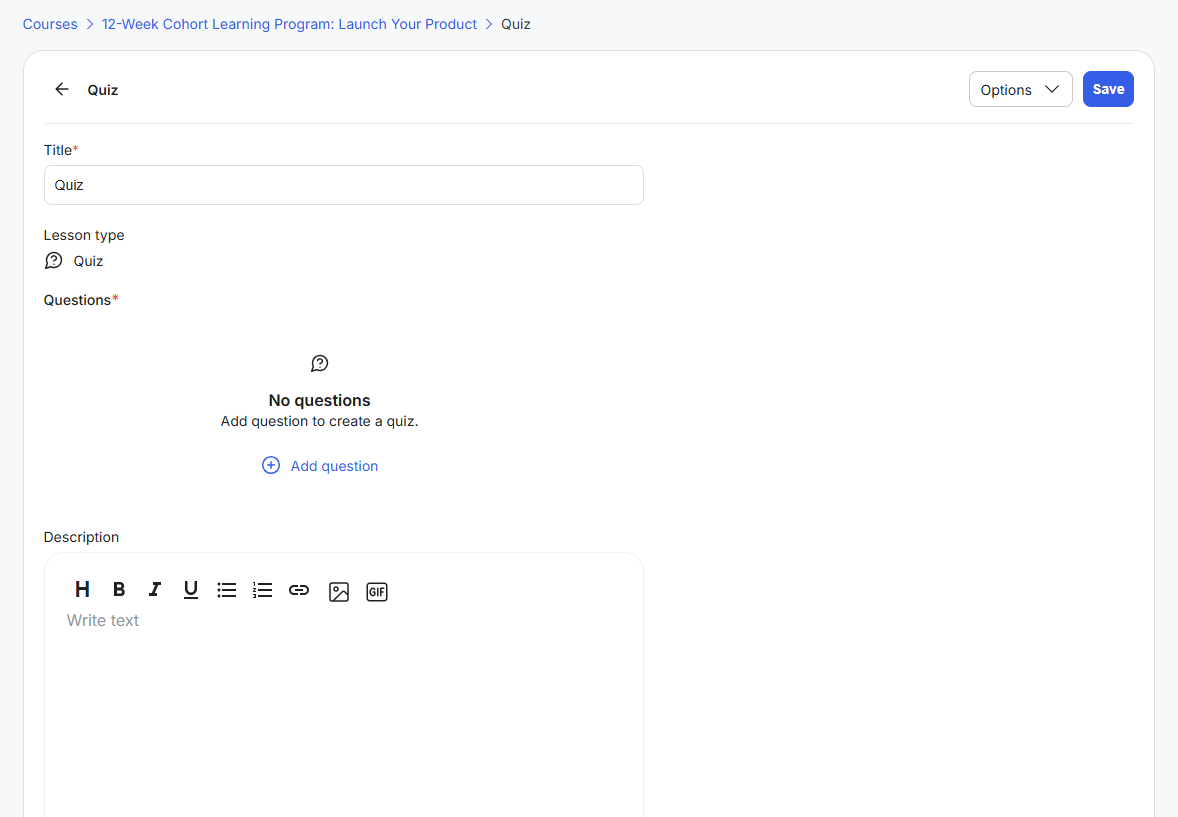 Works for any format, like live cohorts, evergreen courses, or short training.
