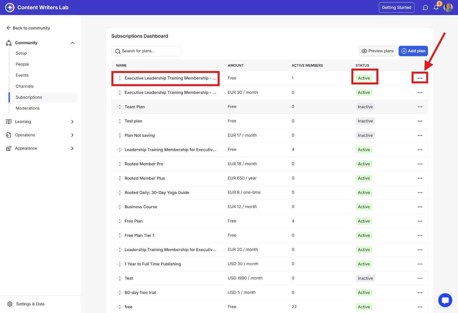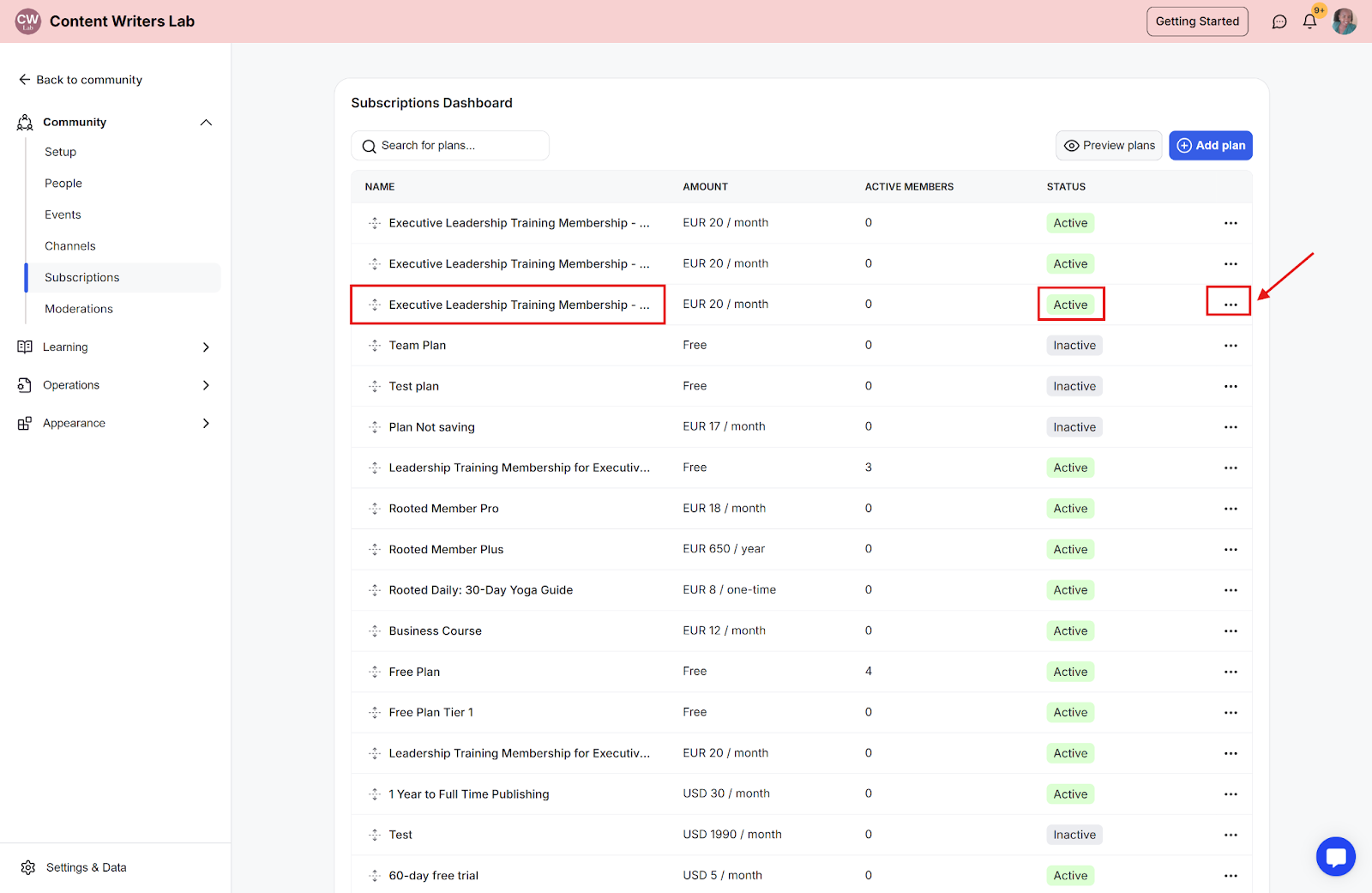 Step 3: Find the subscription plan you want to hide and click the three-dot icon on the right of the plan.