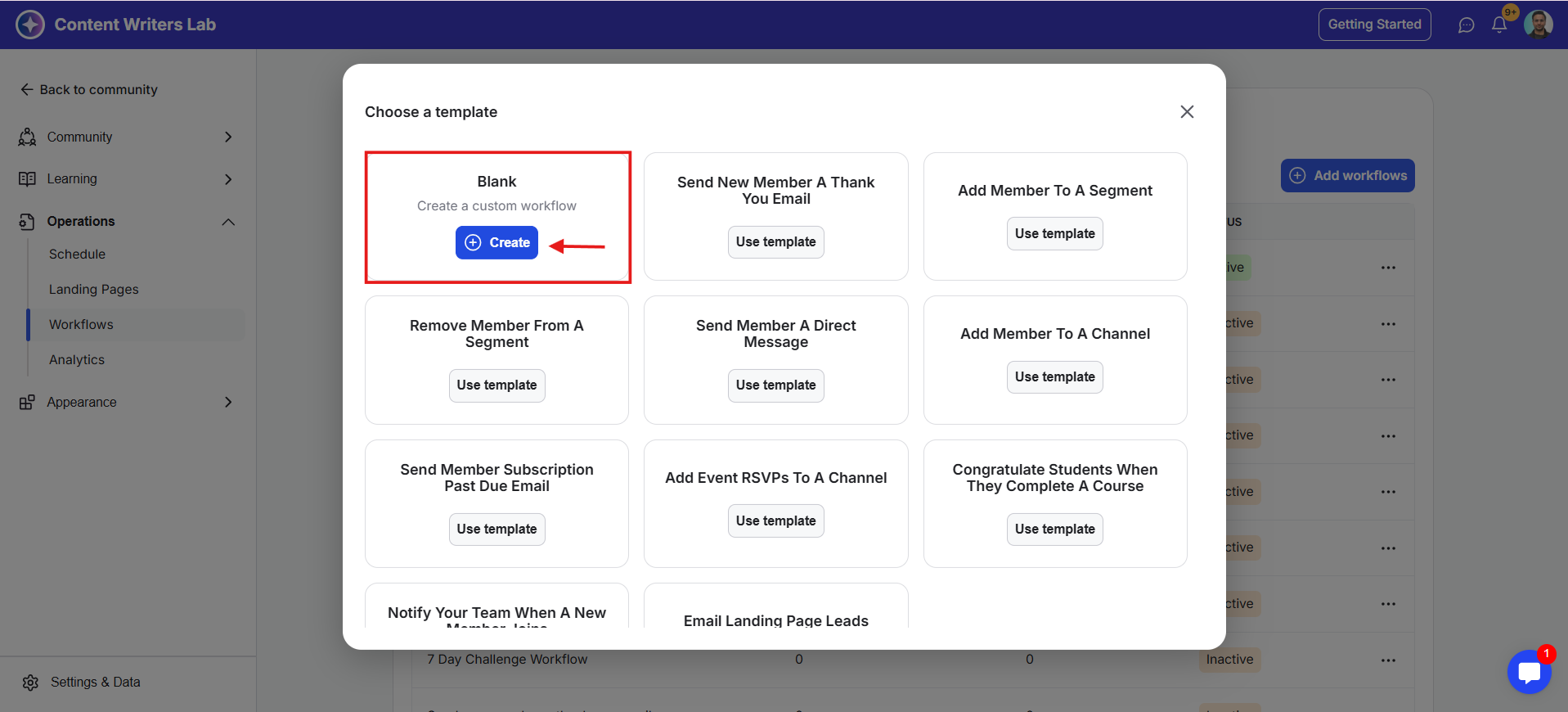 4) Click on the blue +Add Workflows button to create a new workflow. This shows the Templates pop-up.