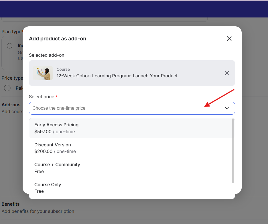 1) Go to the Subscription Plan or the Pricing option of the course or library resource where the add-on is attached.