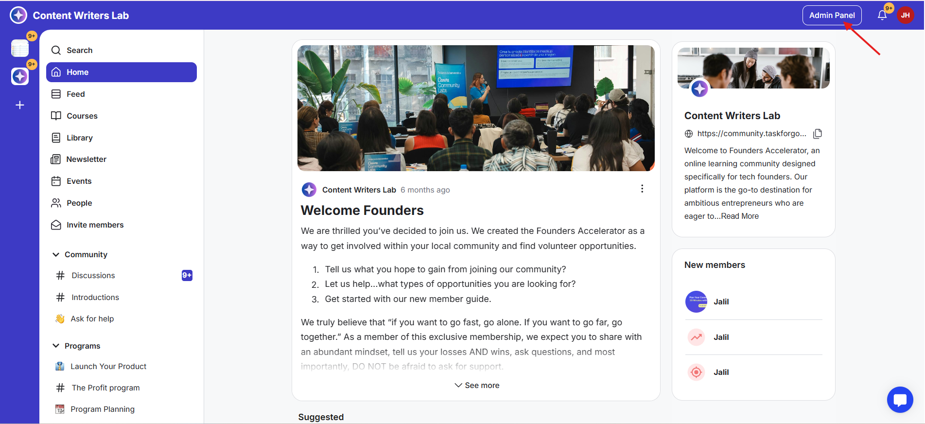 2) Go to your Admin Panel. This takes you to the backend of your community, where you can manage all products and settings.