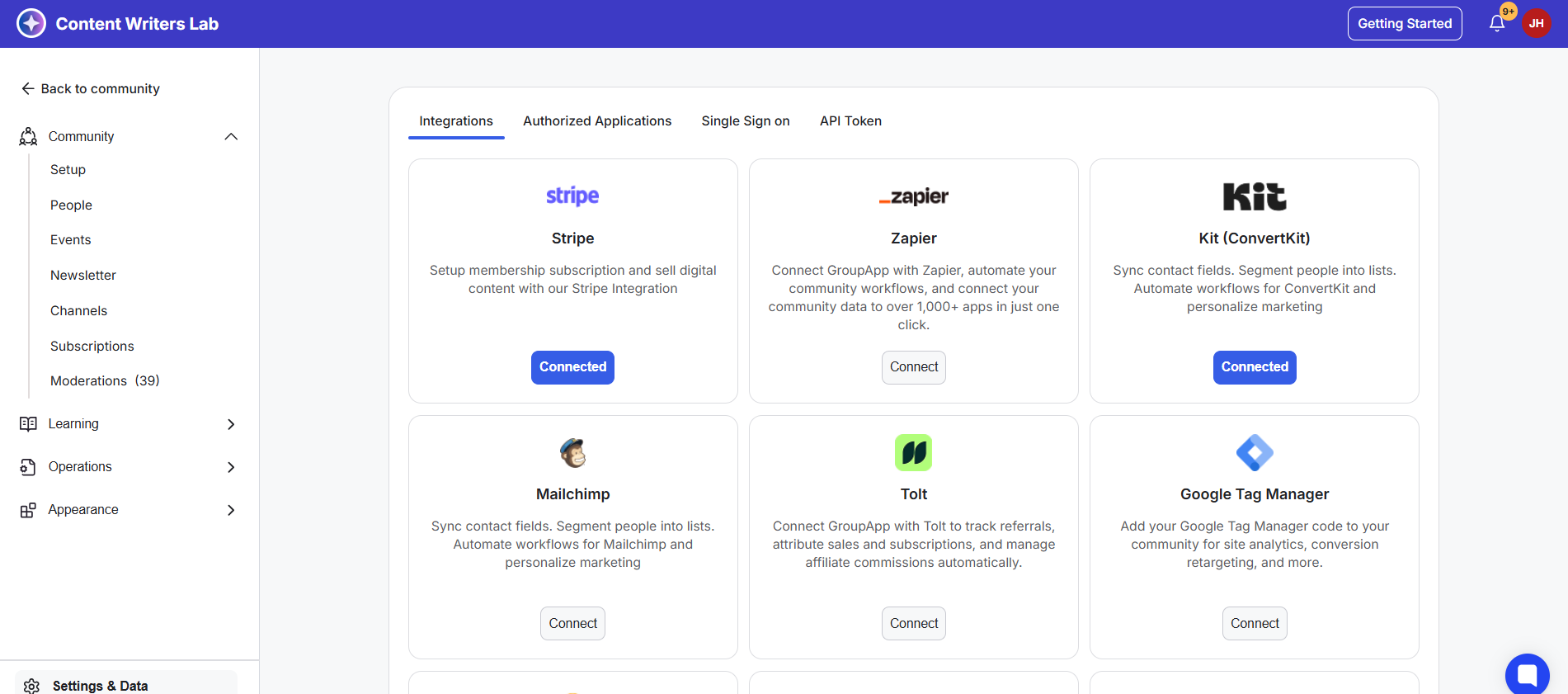 4) Open the Authorized Applications tab. This lists all the tools currently connected to your community.