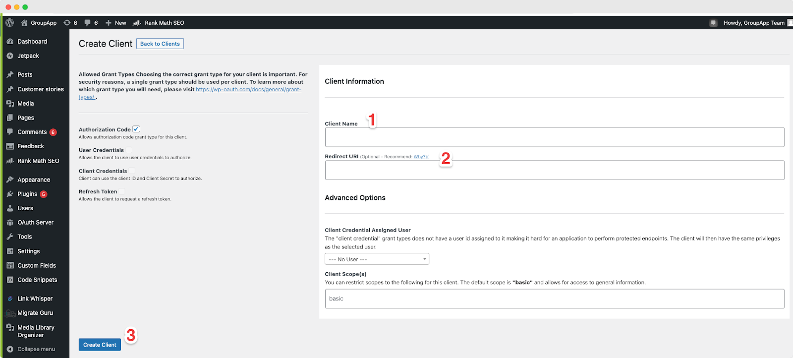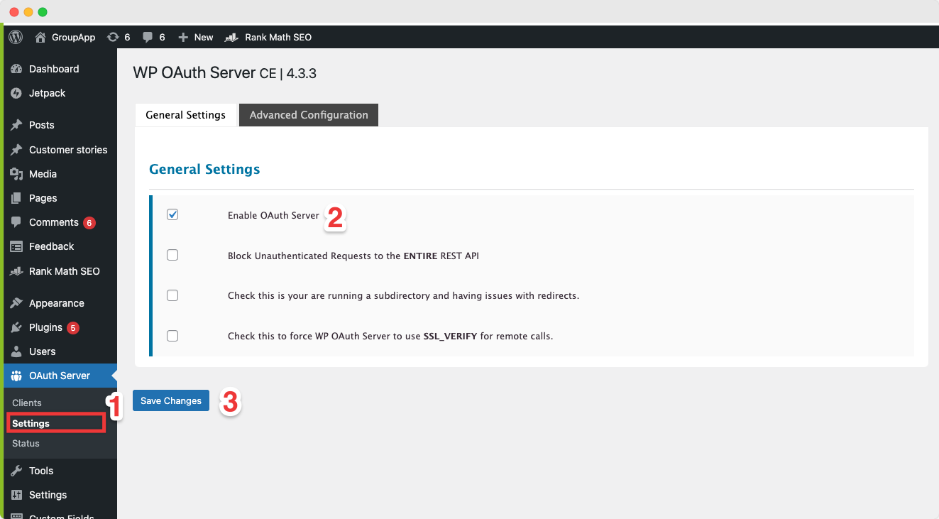 Navigate back to your WP Admin Panel. Click on OAuth Server and under OAuth Server, click Settings.