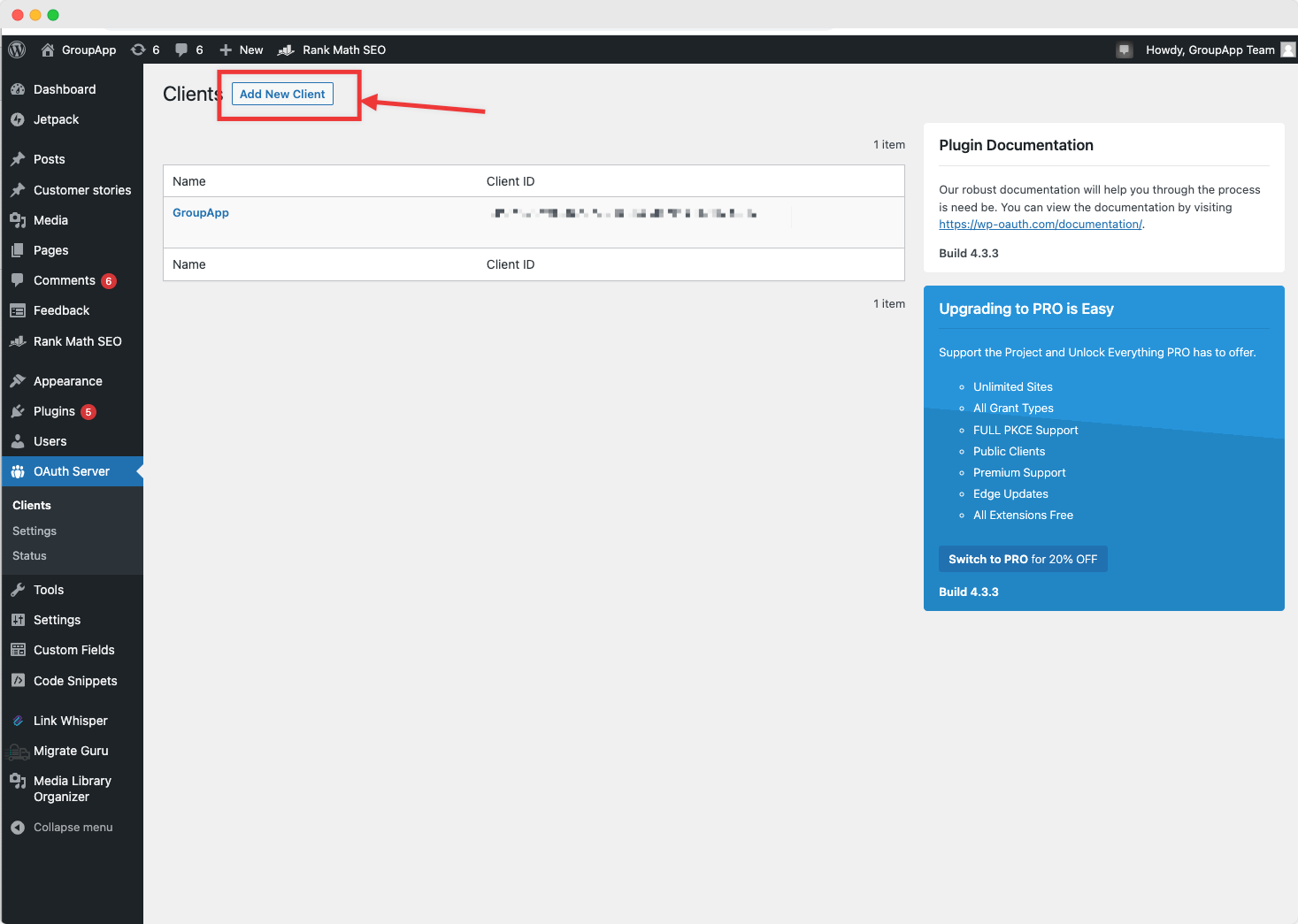 Step 11: Now, click the Add New Client button on the top-right-hand corner of the client page.