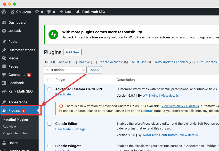 Step 2: On the left-hand menu of your WordPress dashboard, click on Plugins
