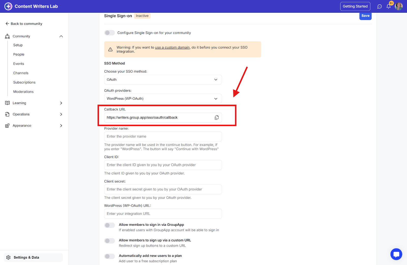 Step 1: Copy the generated Client ID and Client Secret and head back to your community Single Sign-on configuration page.