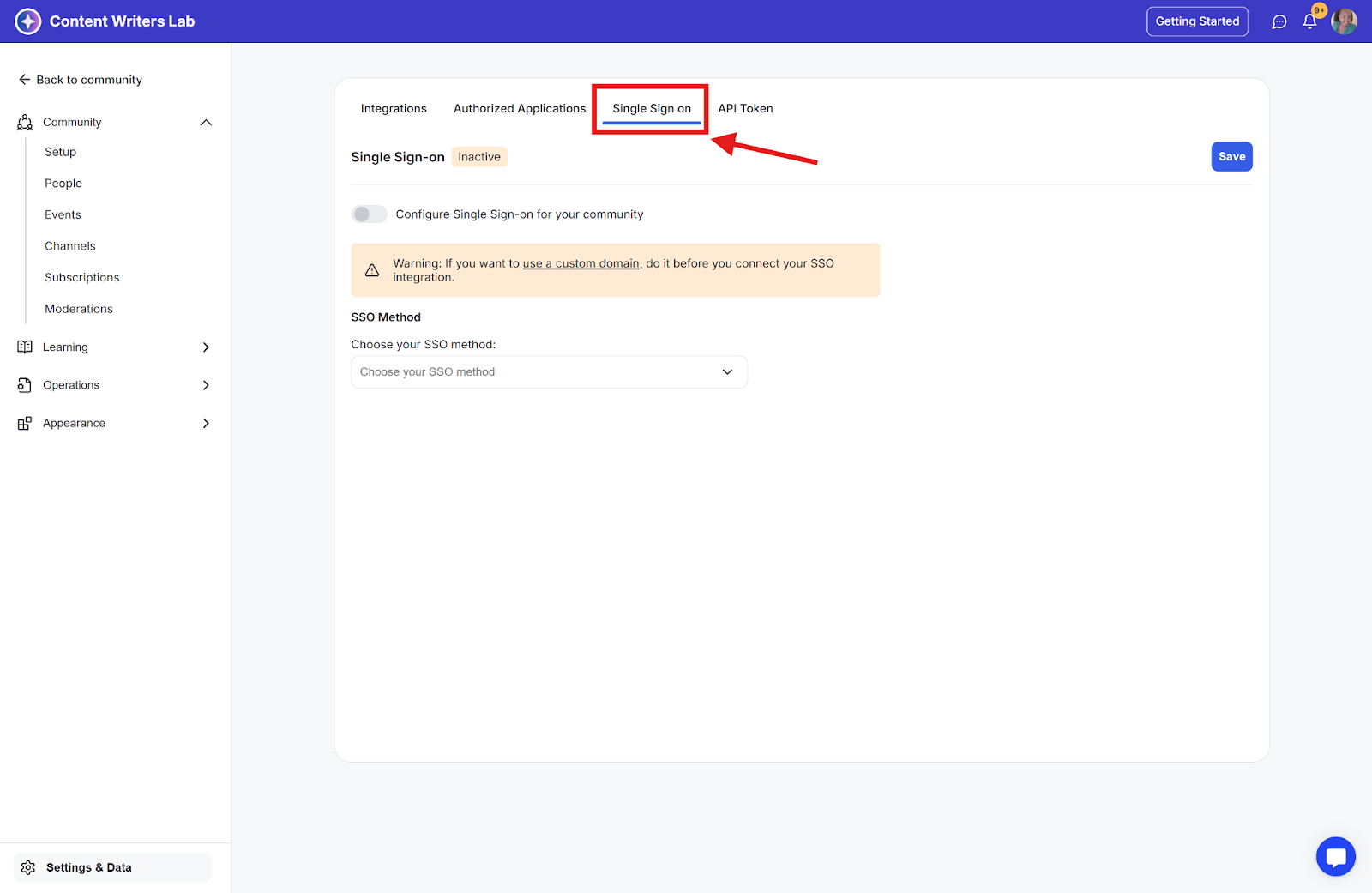 The domain in the URL is your default GroupApp subdomain. eg, https://examplecommunity.group.app, the domain is examplecommunity