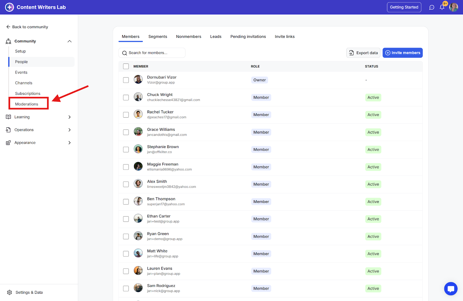 Step 2: Click Moderations in the admin side menu.