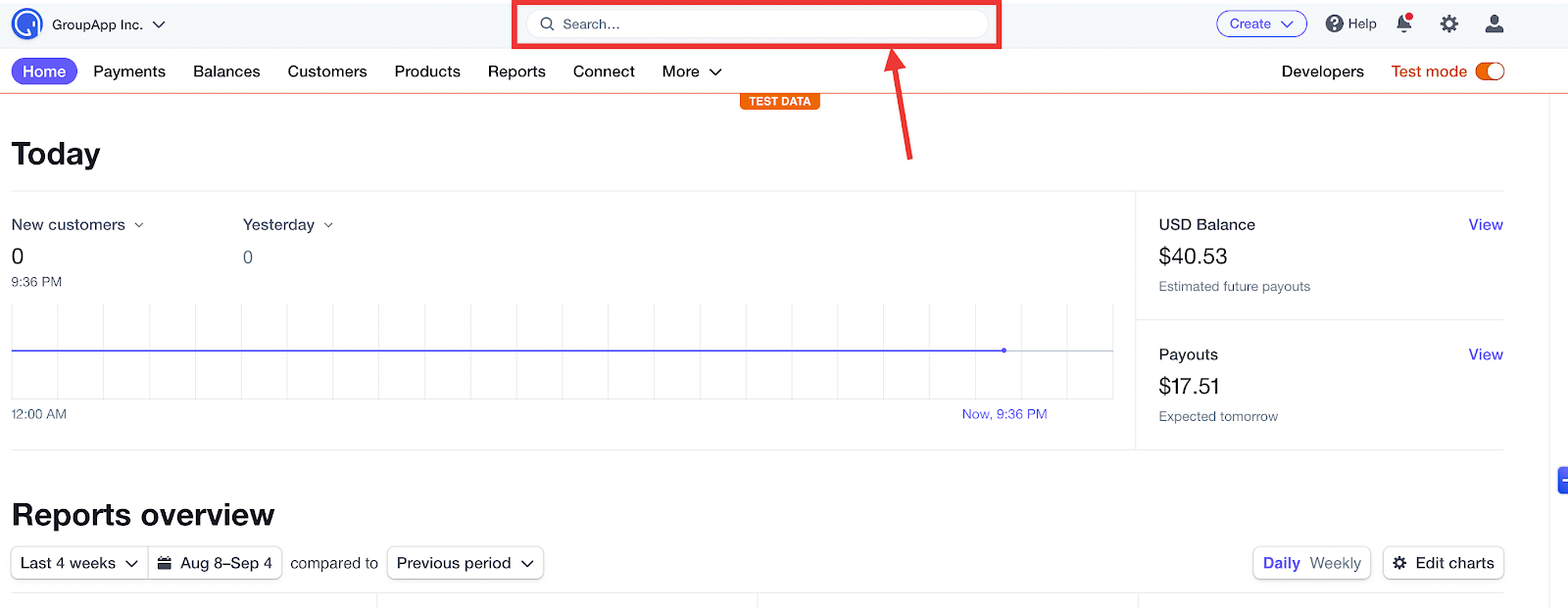 Step 2: Click on the search bar inside Stripe.