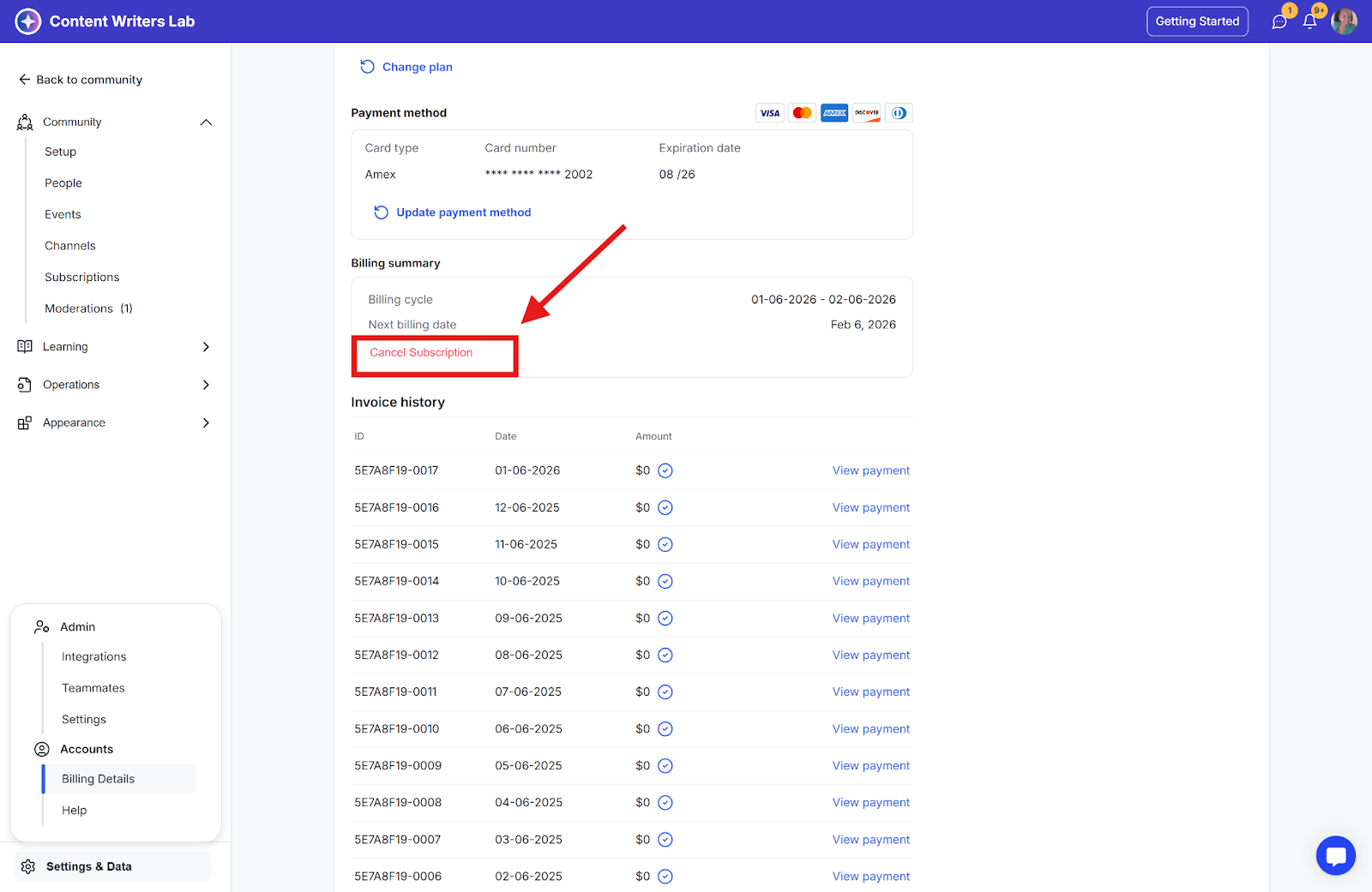Step 3: Click Cancel Subscription.