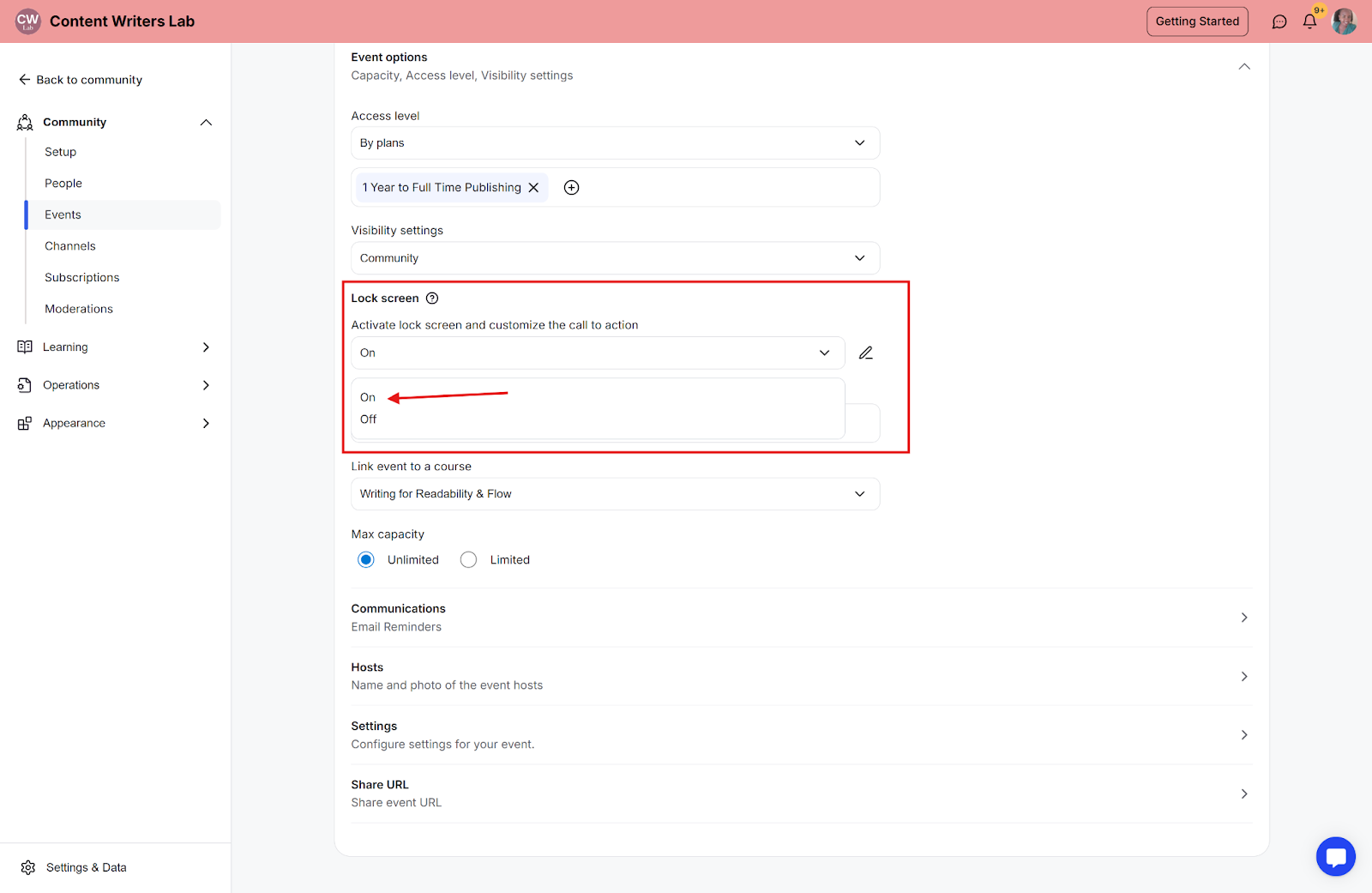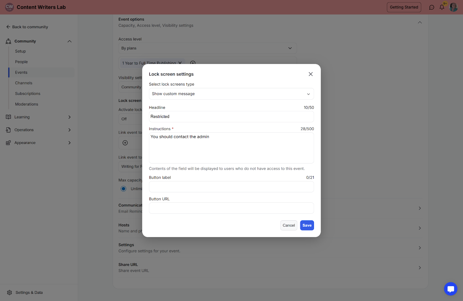 Step 7: Lock screen—a pop-up screen that shows up to members who attempt to access the event and don’t have access to the event.