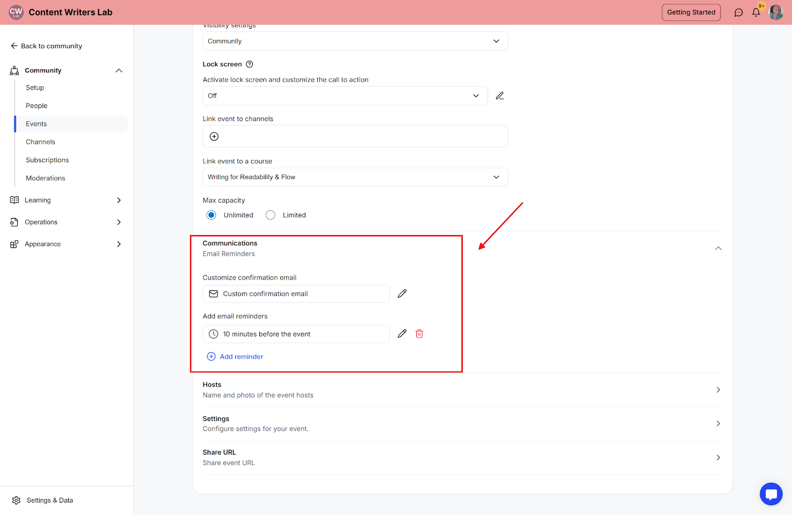 Step 9: Communications: Customize the confirmation email and reminders.