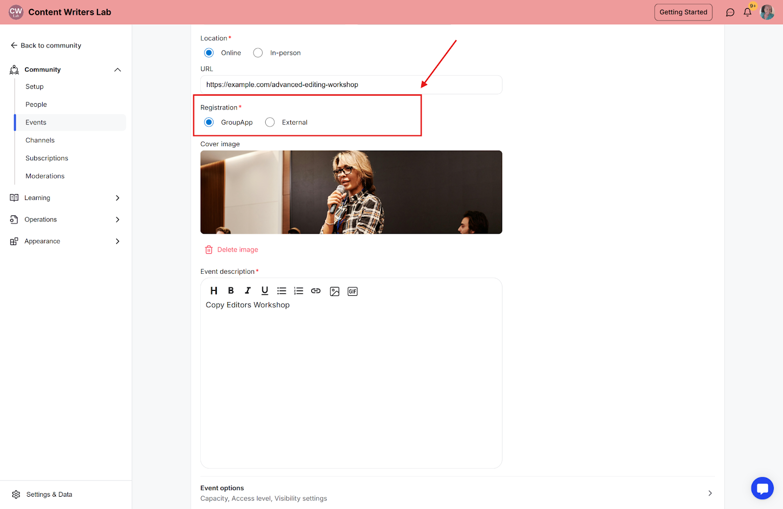 GrouApp—If set to GroupApp, they will be able to RSVP to the event on GroupApp platform