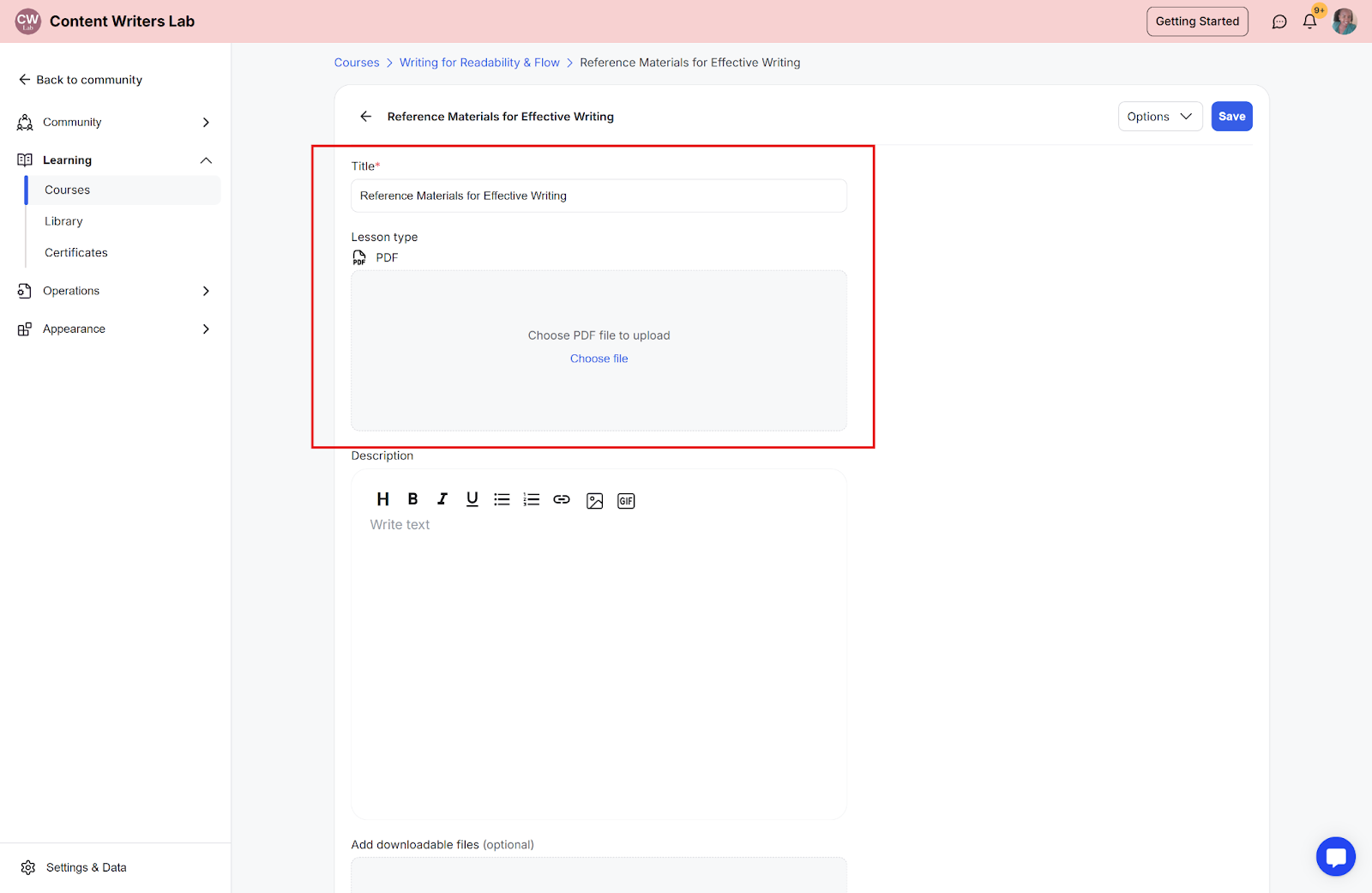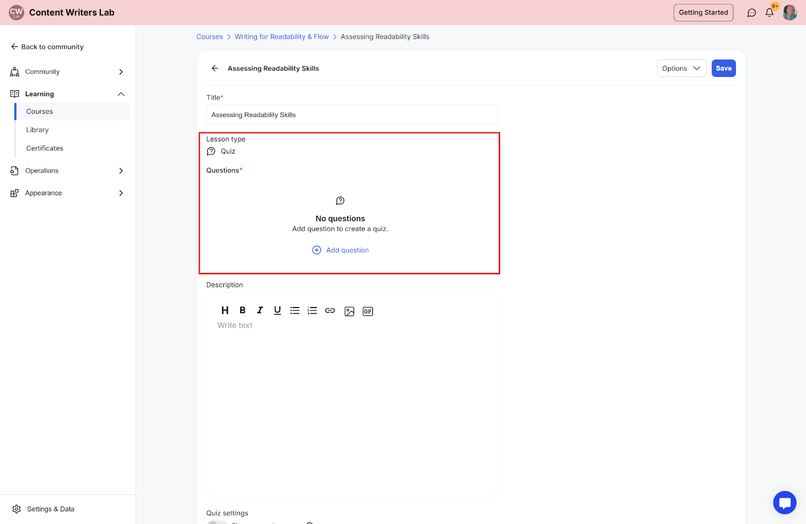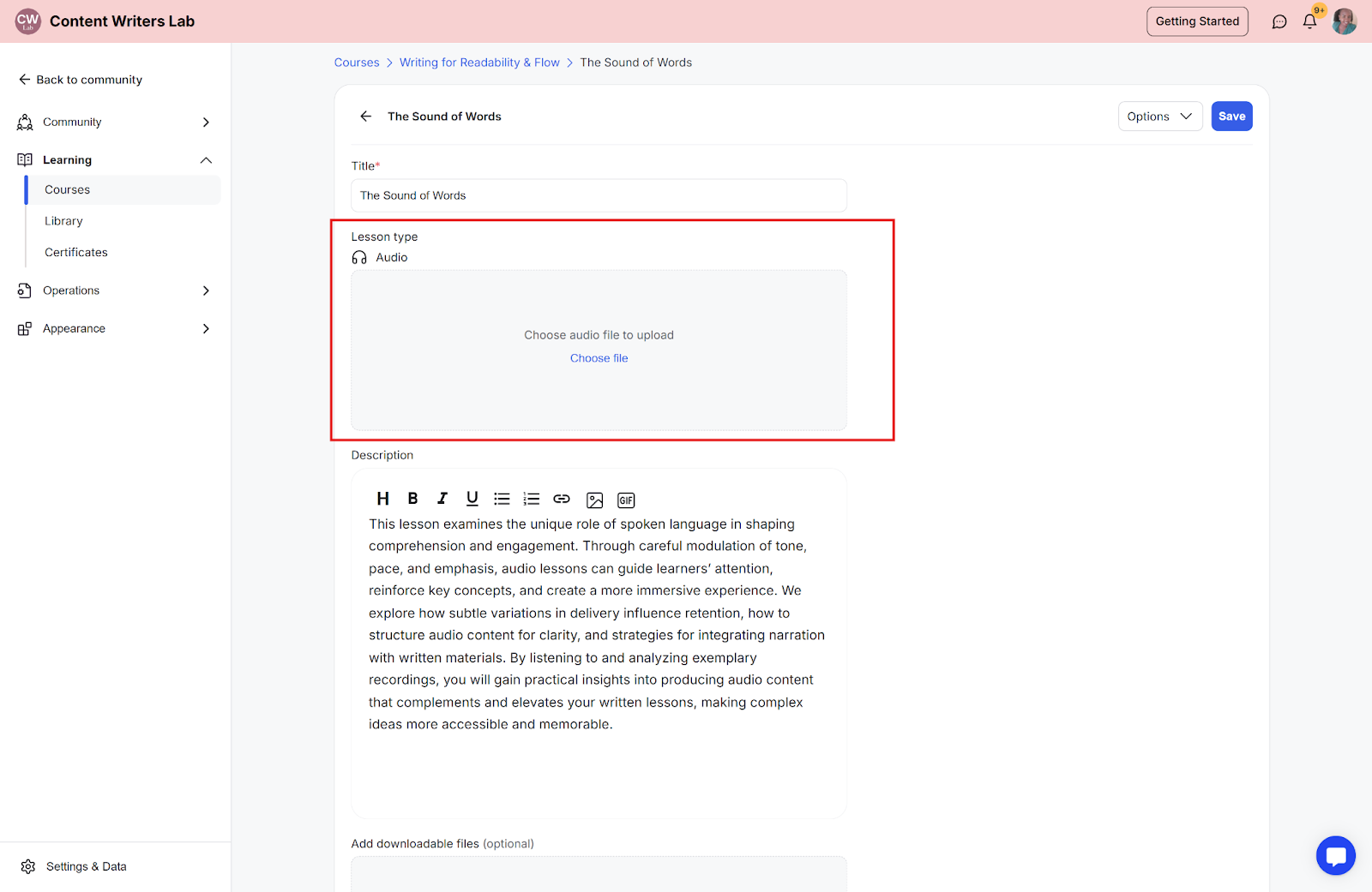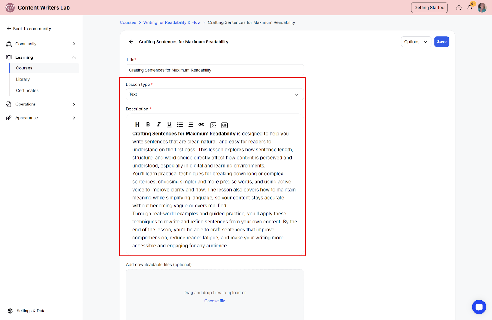 4. Video Link: A video URL (from YouTube, Vimeo, or Wistia) is required for this lesson type.