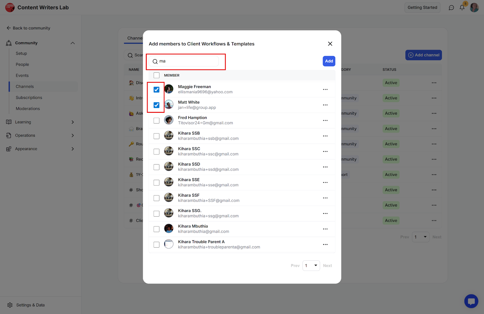 Step 6: Once you’ve selected all members, click the Add button at the top-right corner to add them to the channel.