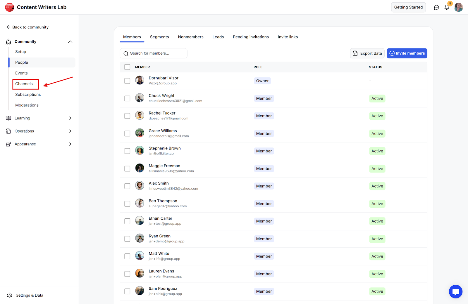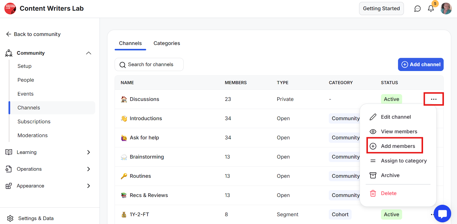 Step 3: Find the channel you want to add members to, click the three-dot menu on the right, and select Add Members.