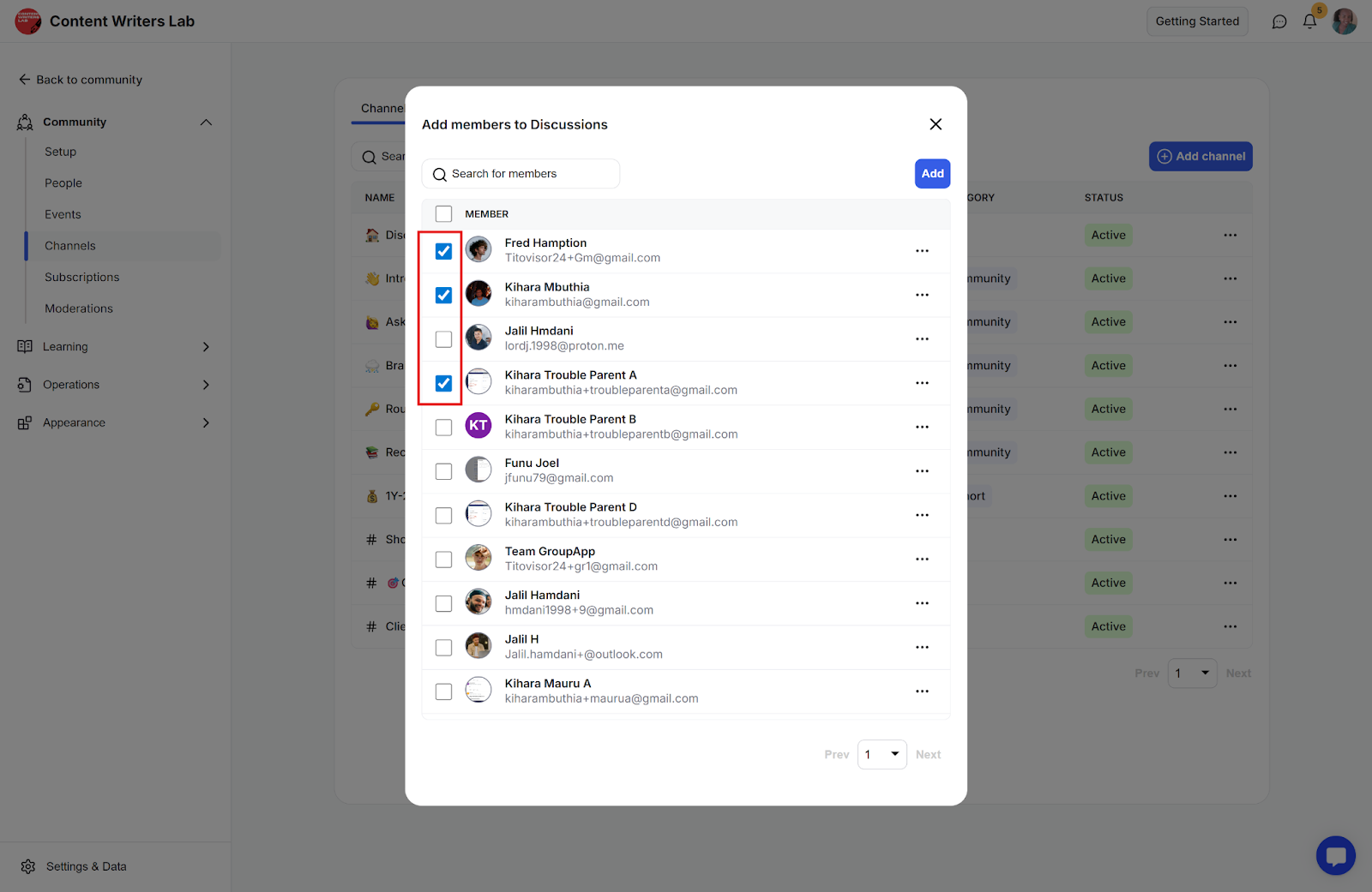 Step 4: A list of members will appear. Tick the checkboxes next to the members you want to add.