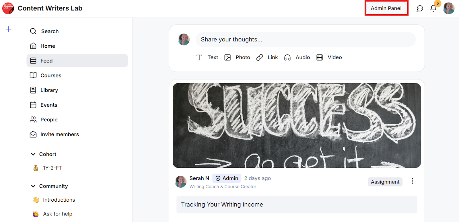 Step 1: Go to the Admin Panel from the top-right corner of the dashboard.