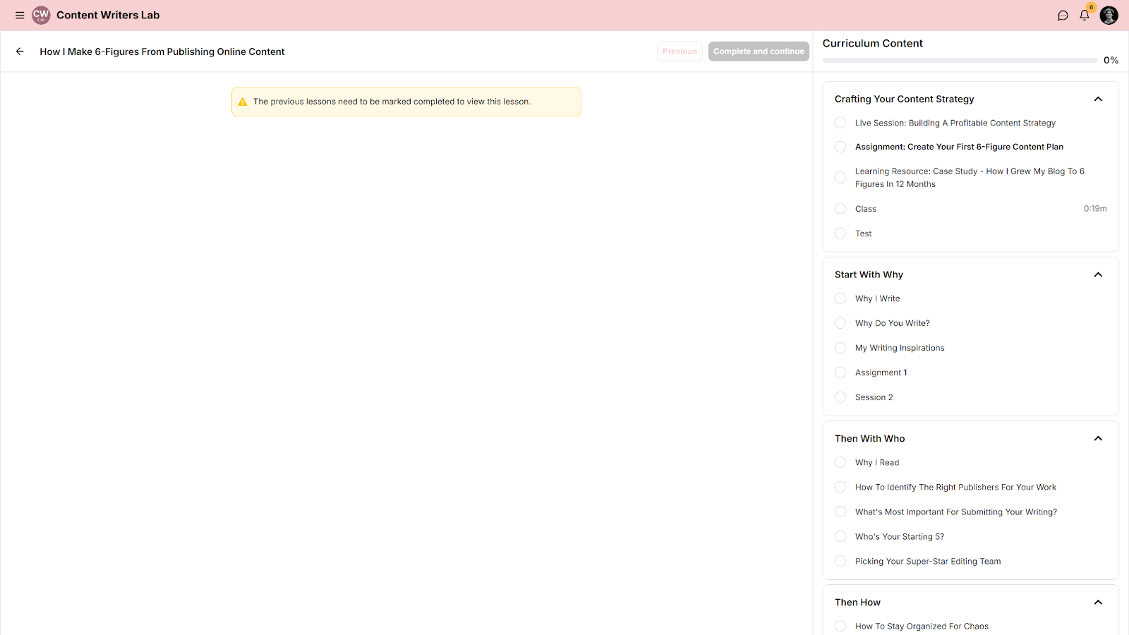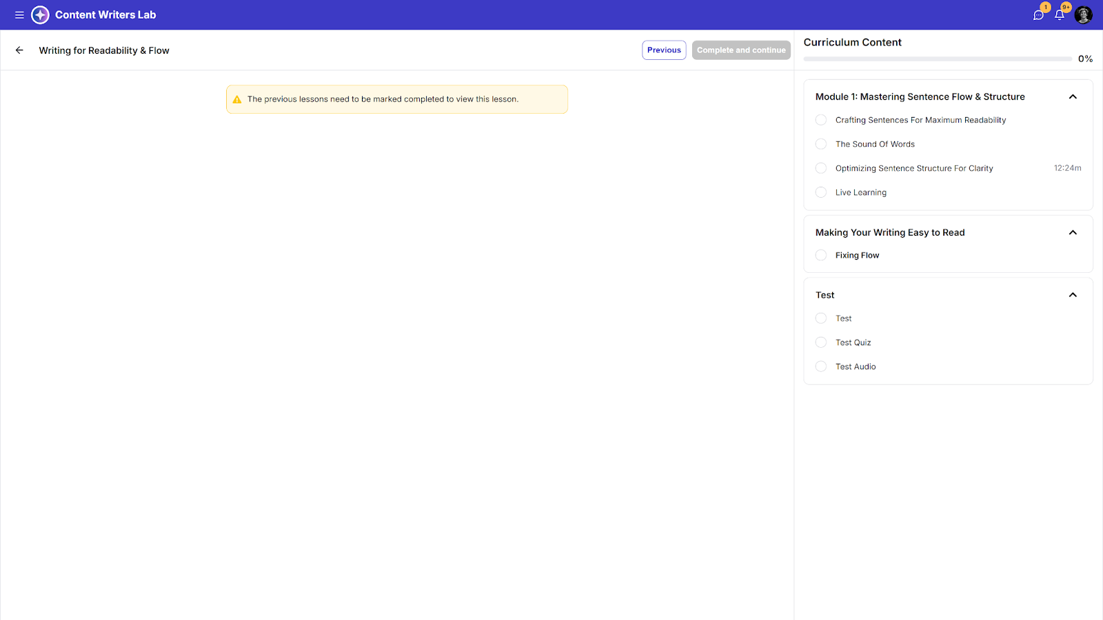 When you enable enforced section or lesson completion, students must progress through lessons in the order they appear in your course. They will need to mark each lesson as complete before moving on to the next one.