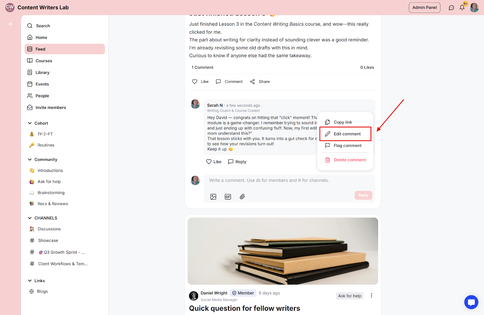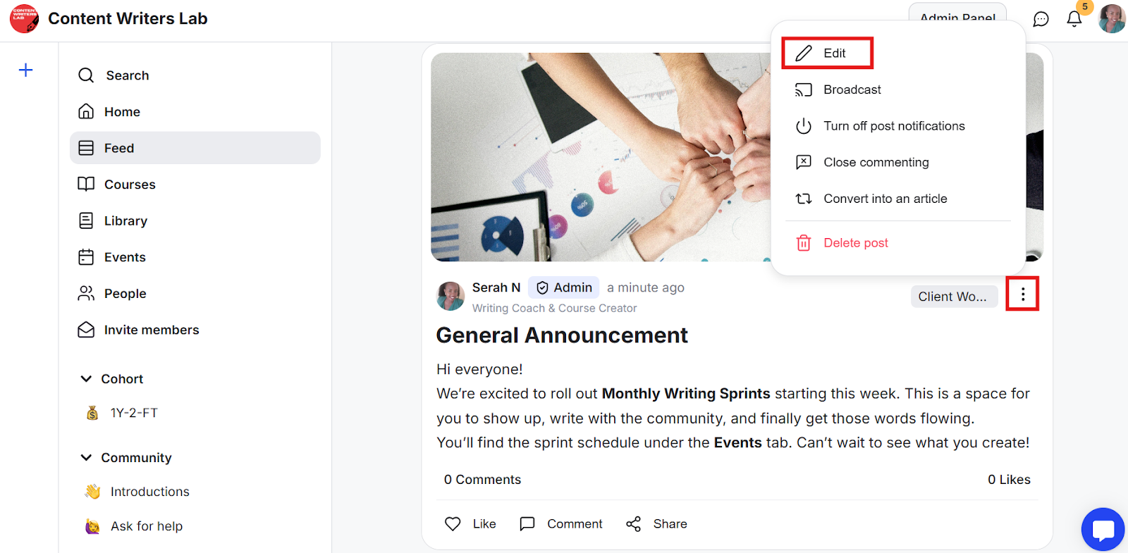 Step 1: Go to any authored comment, hover over the comment, and click the three-dot icon. Click Edit Comment.