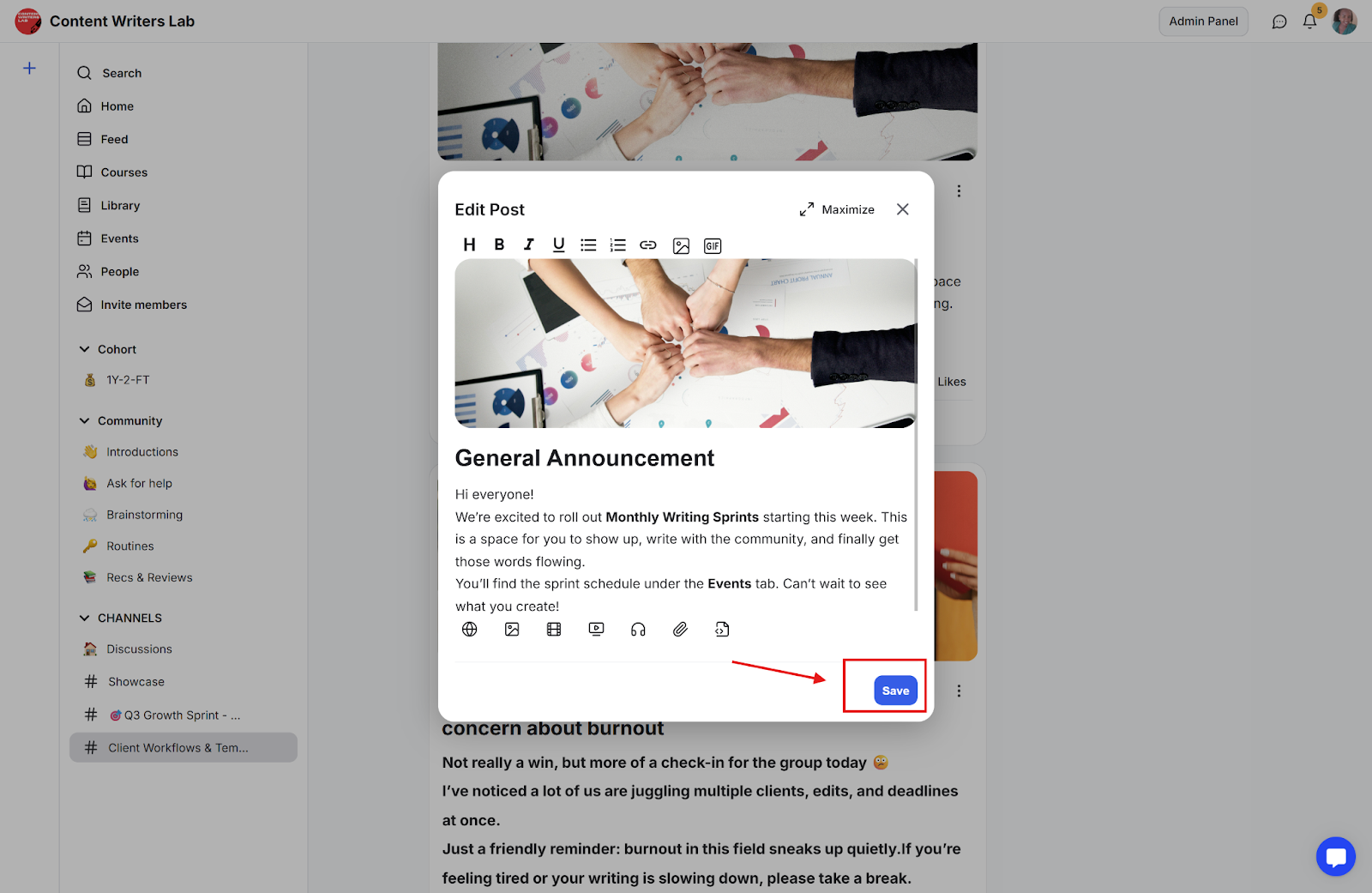 Step 2: Edit your comment and click the Save button to finalize your edit.