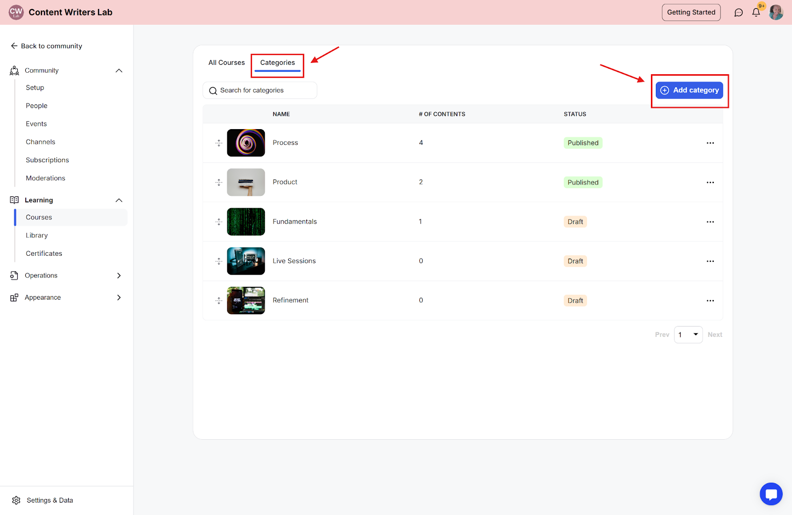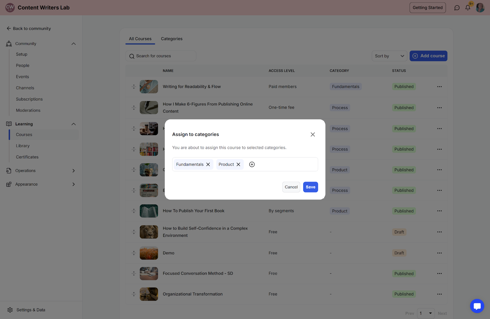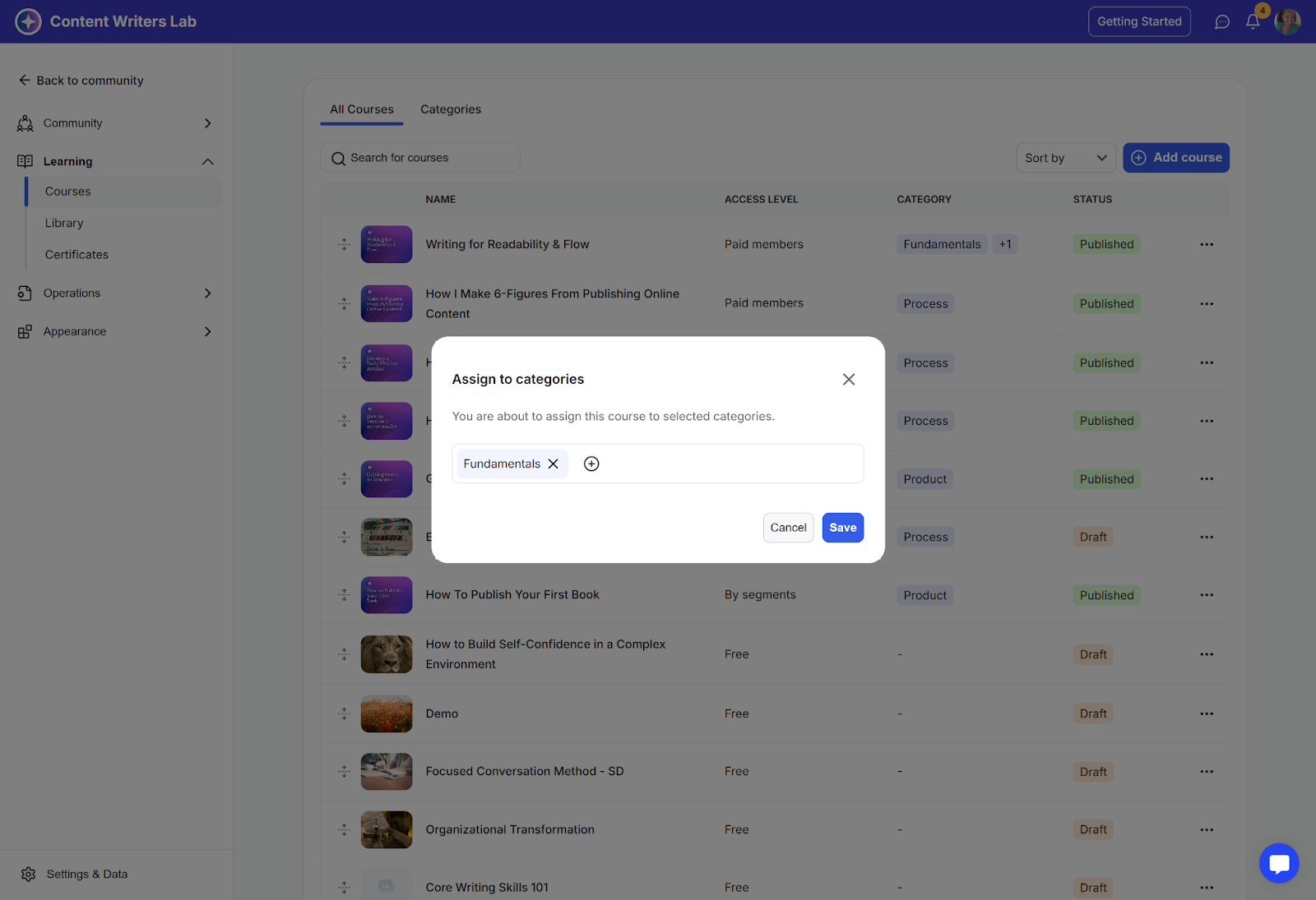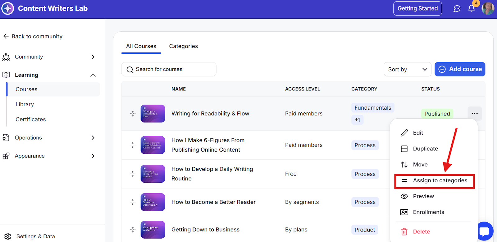 Course categories help you organize and group related courses so members can find them more easily. This guide shows you how to create categories, assign courses, and arrange their order.