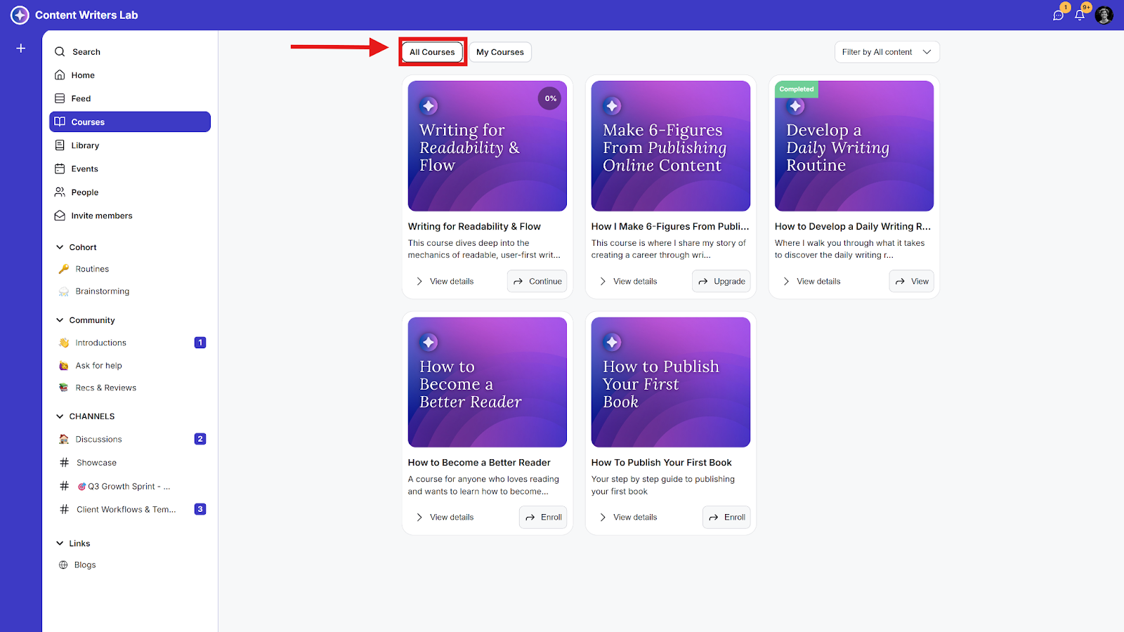 Step 2: Go to the All Courses tab.