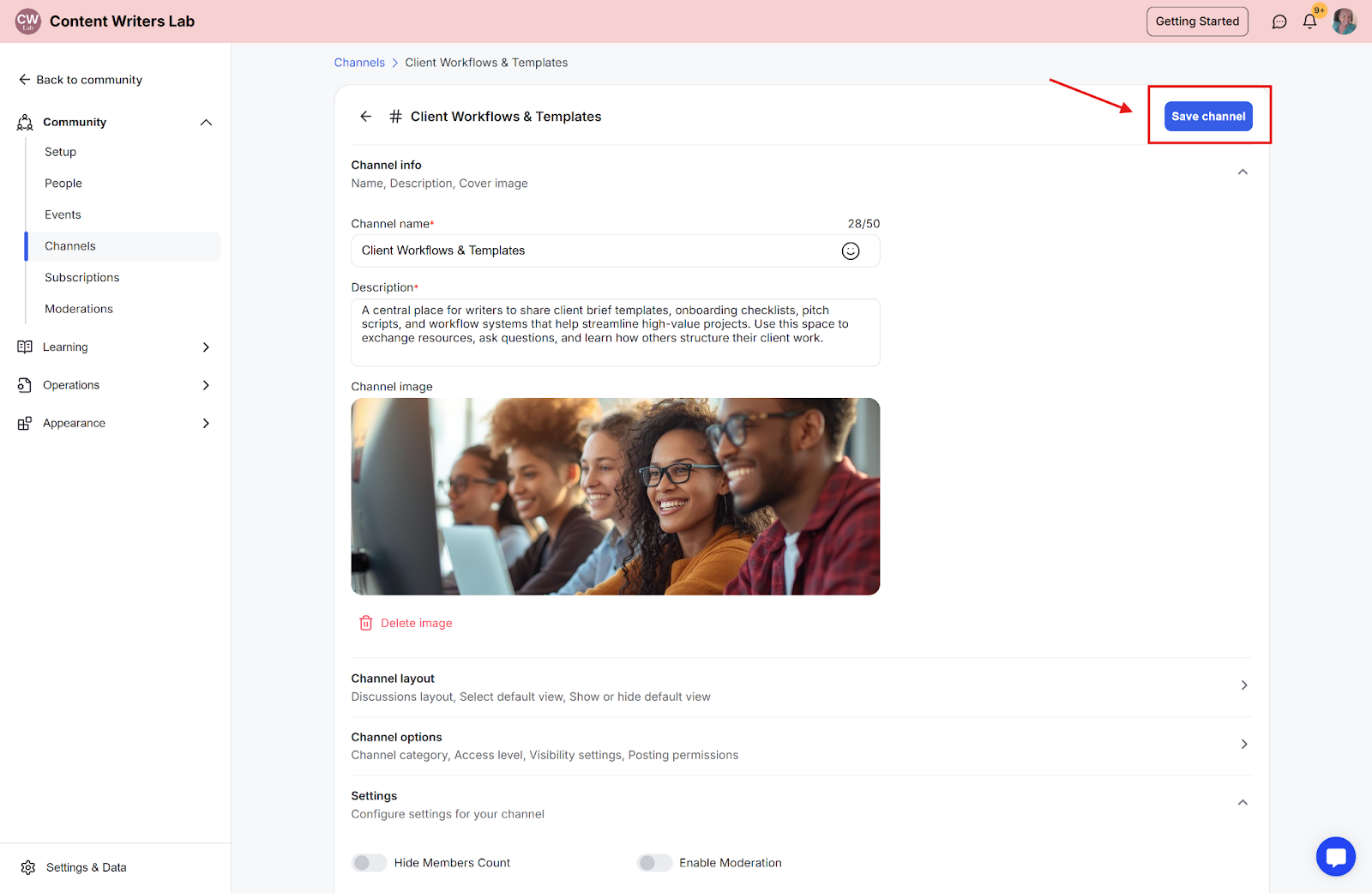 Step 6: Click Save Channel at the top-right corner to apply the changes.