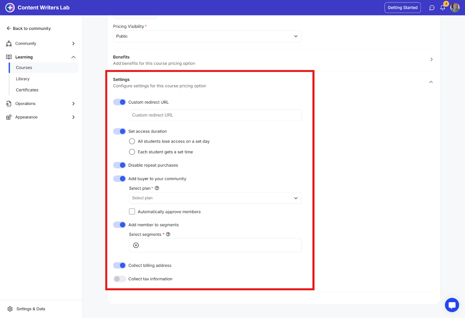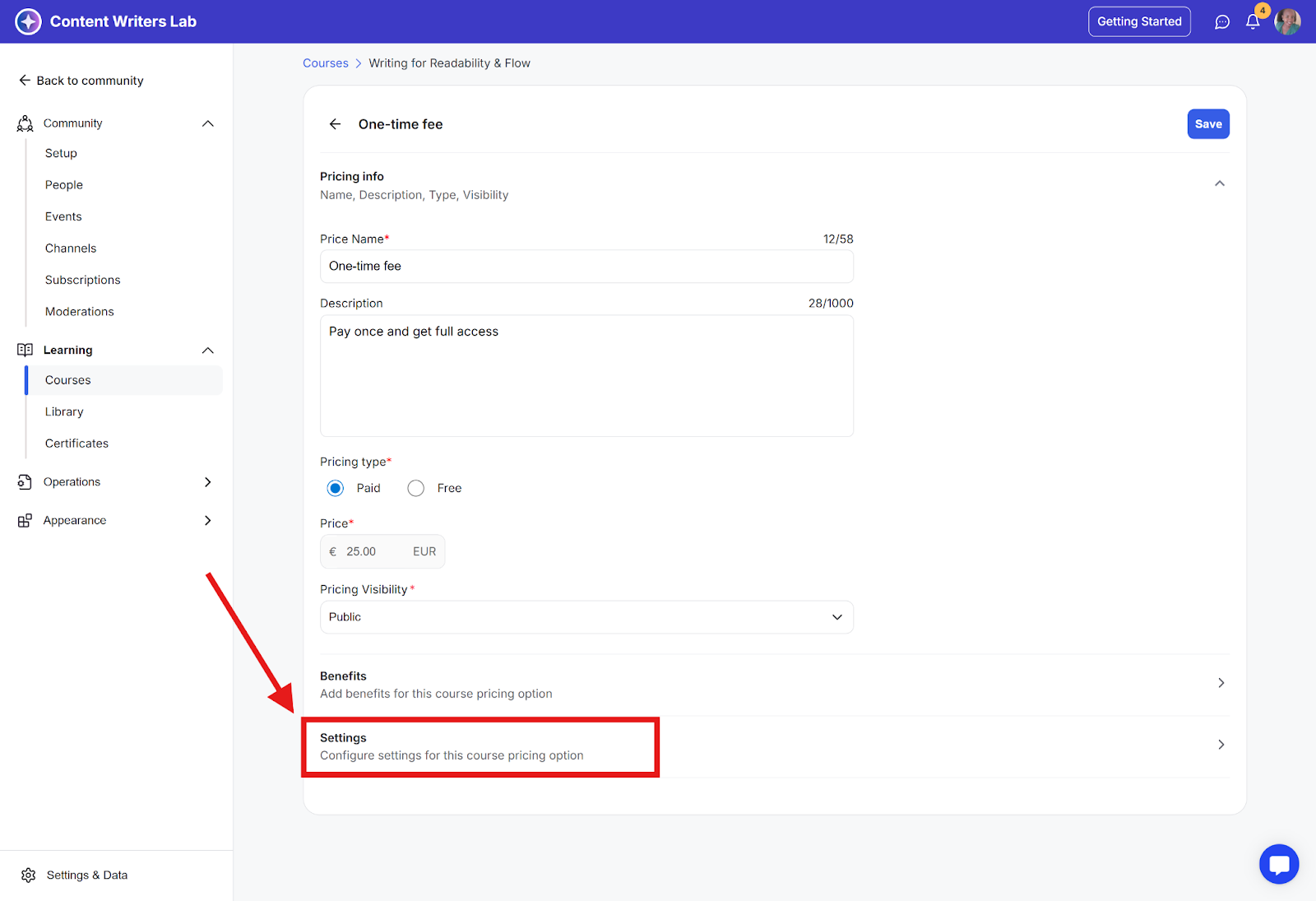 One way to monetize your course is by charging users for access. In Course Settings, you have the option to restrict access to the course until the user has made the payment for course access.