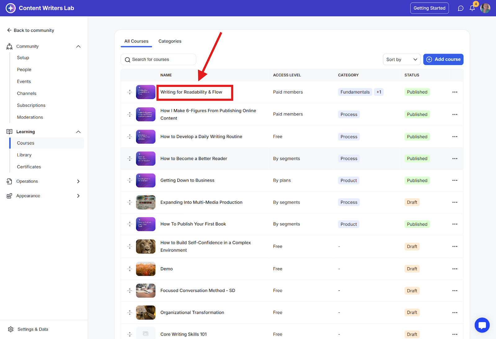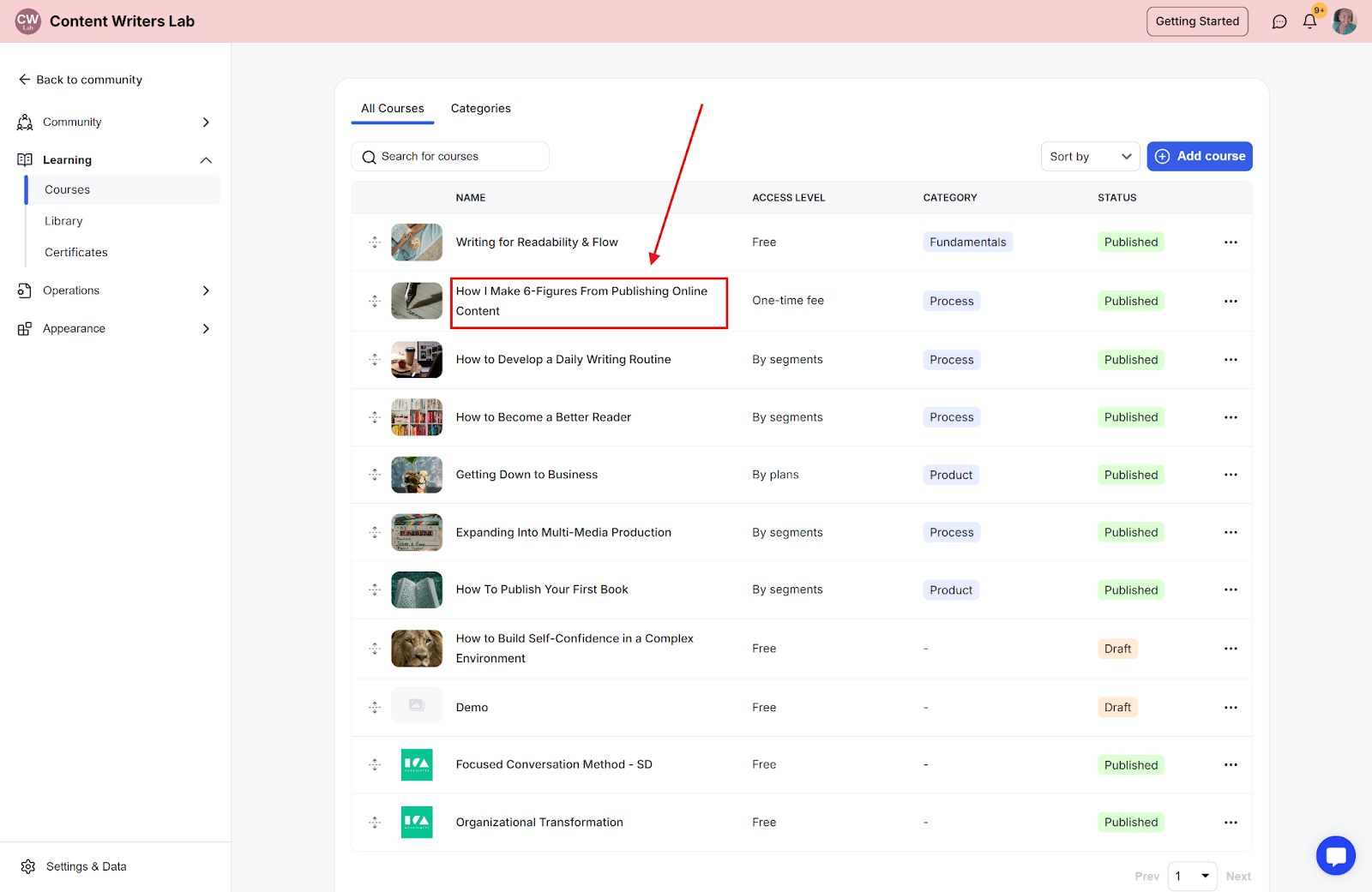 Step 3: Click the course you want to configure on the course list, or create a new course.