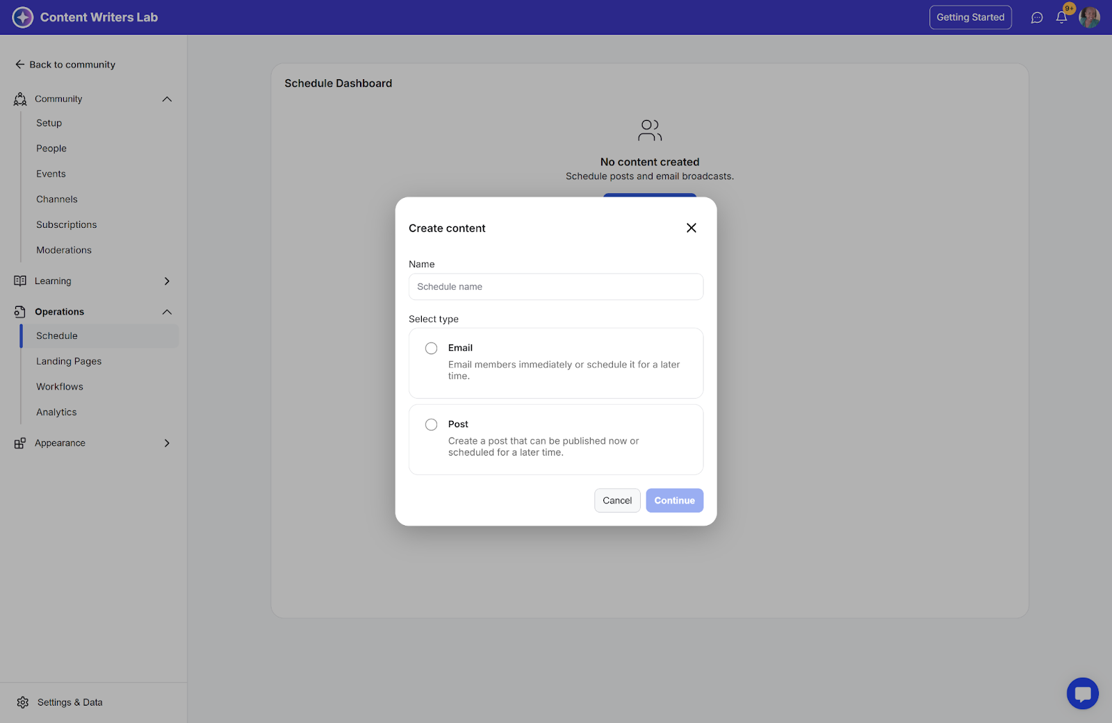 Step 4: Enter the name and select the content type between email and post. Then click Continue.