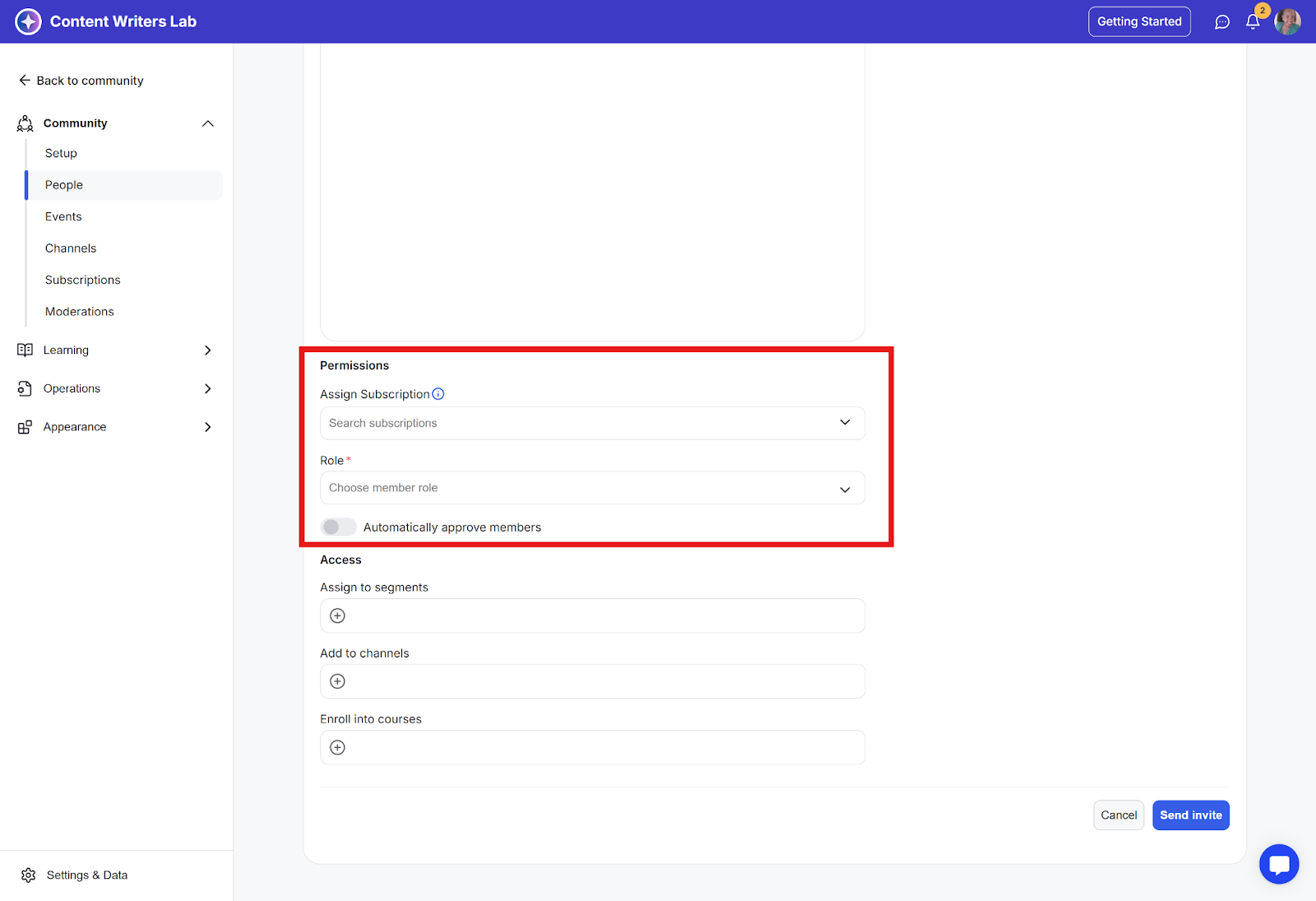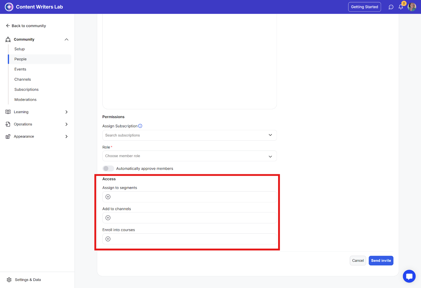 Assign to segments: After completing the sign-up process, the invited member will be added to the community segments that you select.