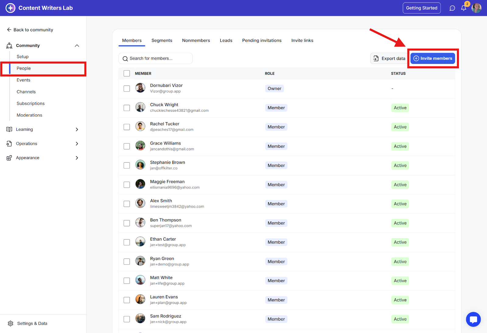 Step 2: Click People on the side menu and then click the Invite Members button.