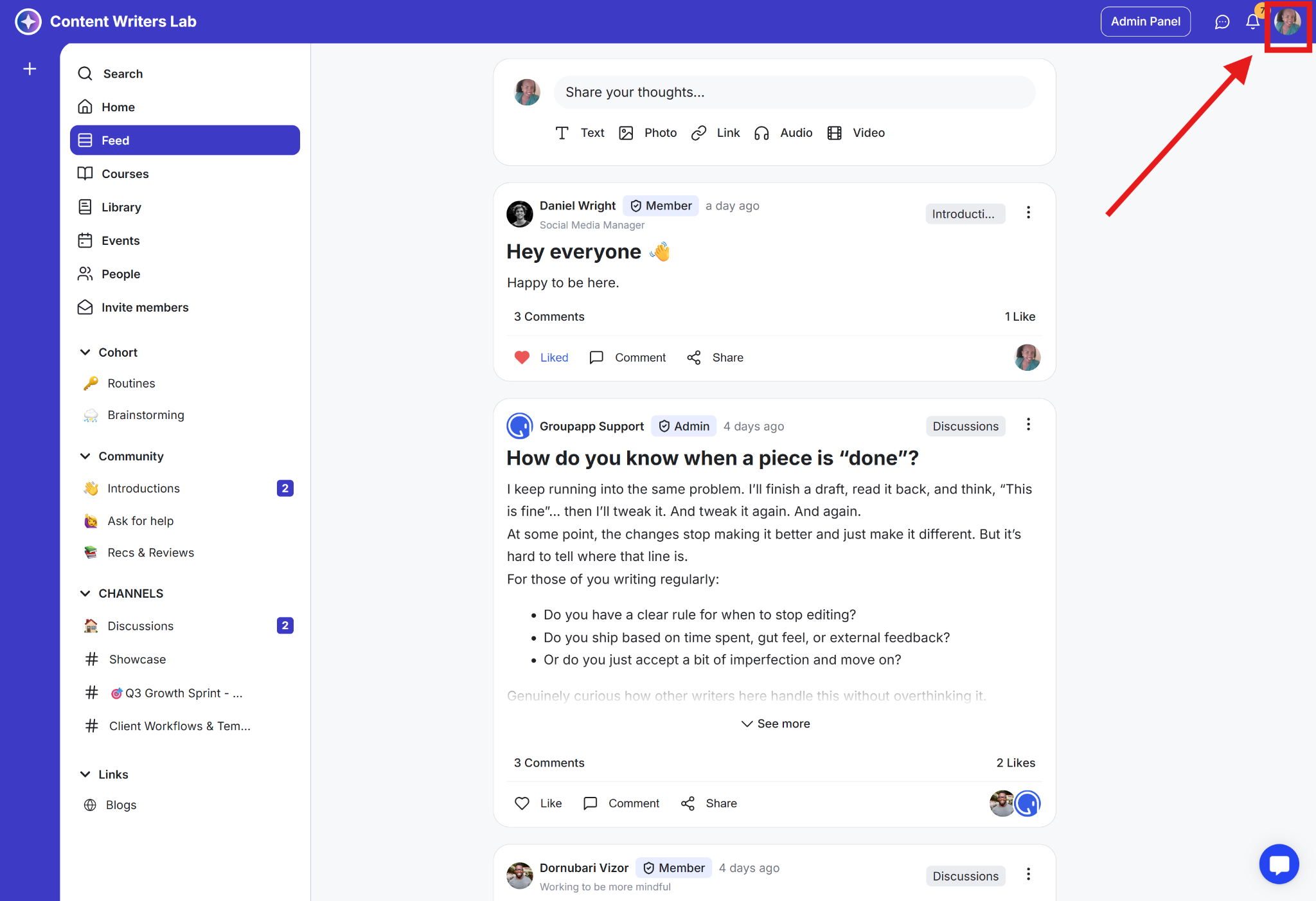 Step 1: Click your Profile Image in the top-right corner.