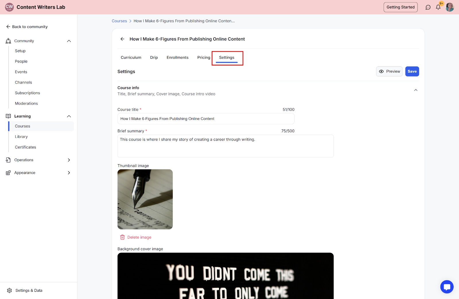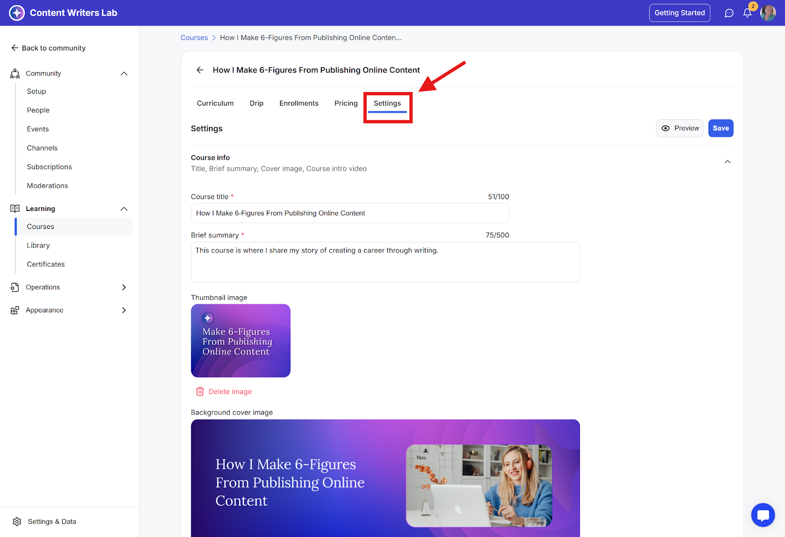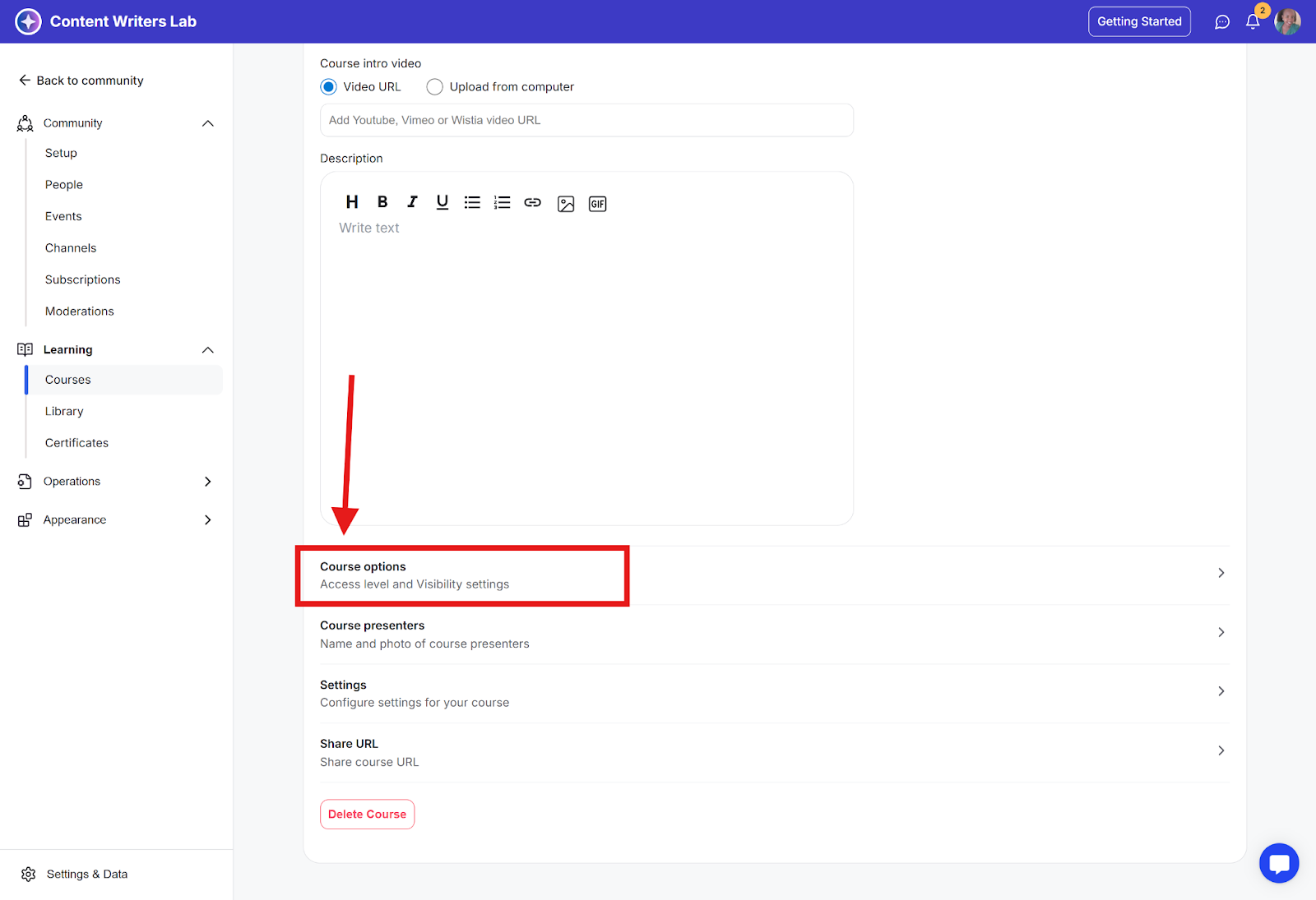 Step 2: In the left navigation menu, go to Learning and click Courses.