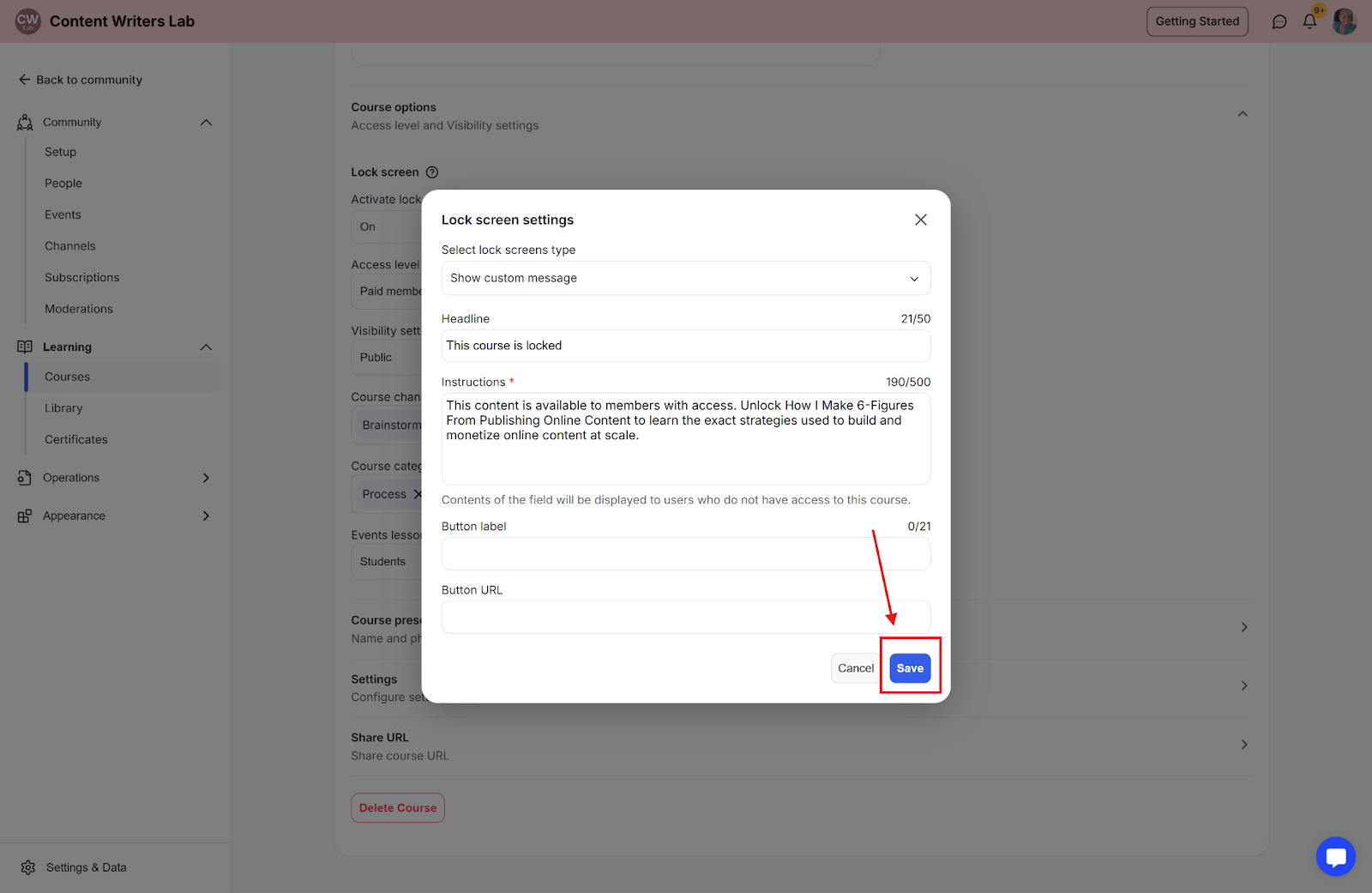 Lock screens can be added to any resource: Course, Library Content, Channel, or Events. This guide shows how to set up a lock screen for a Course.