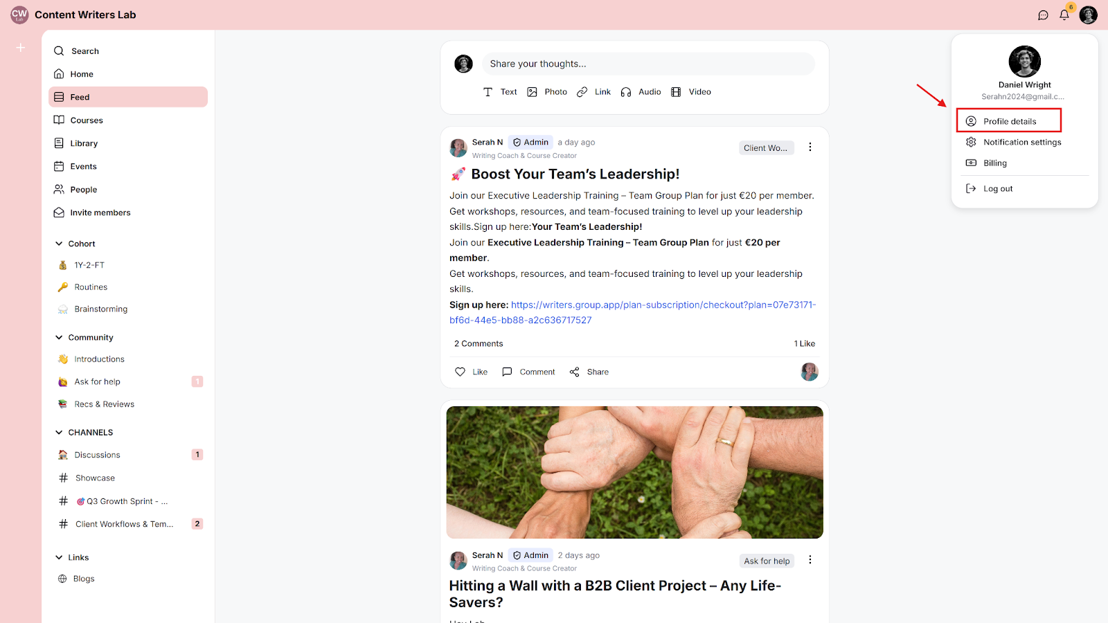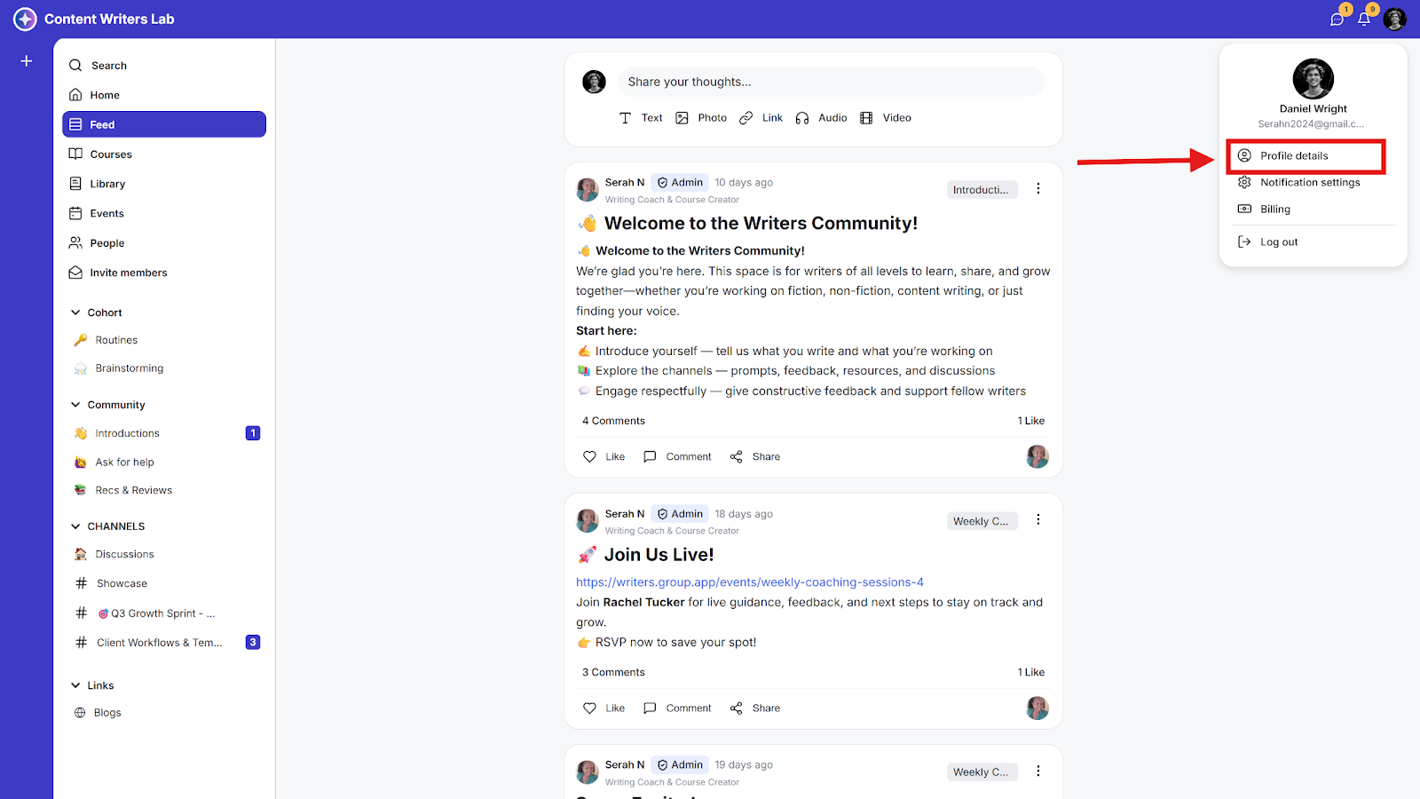 Step 1: Click on your Profile Image in the top-right-hand corner and select Profile Details.