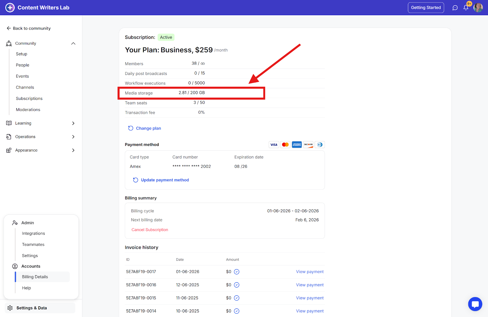 Step 3: Check the Media Storage limit section for the storage limit information.