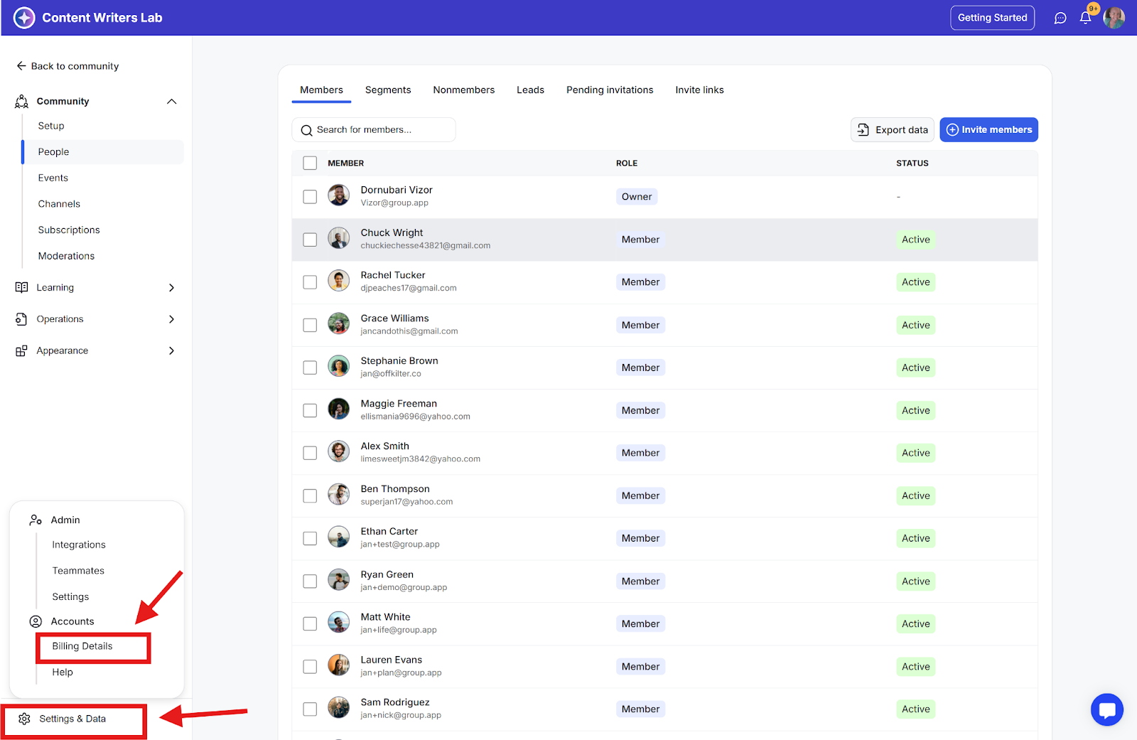 Step 2: Click Settings & Data on the side menu and select Billing Details.